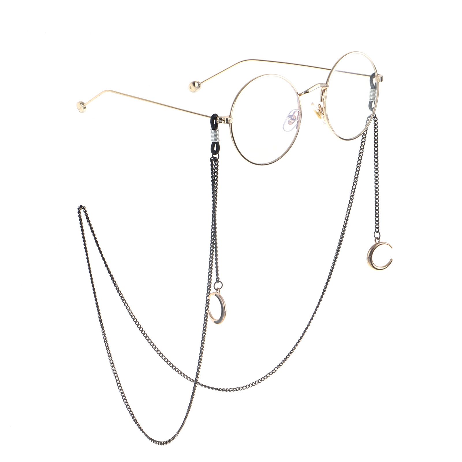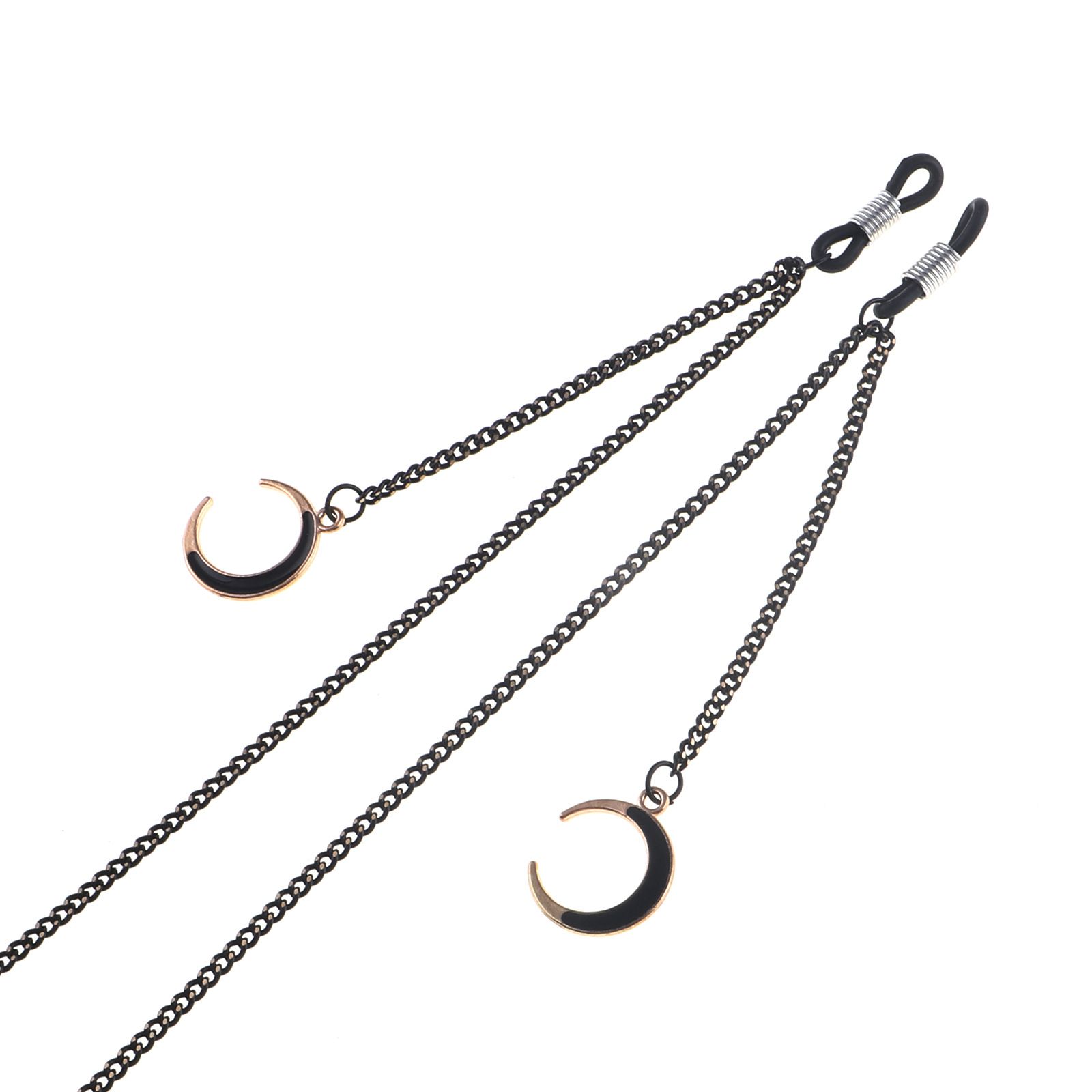 Black-colored metal non-slip chain, with pendant moon, for glasses and masks GL855