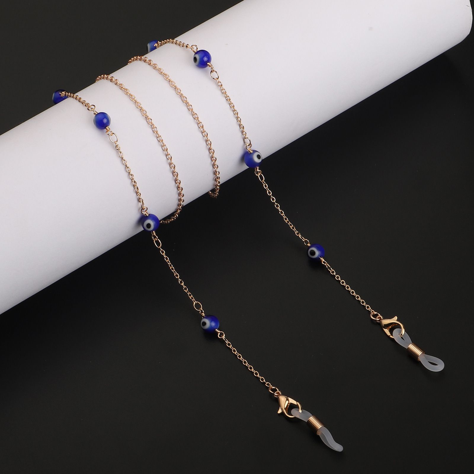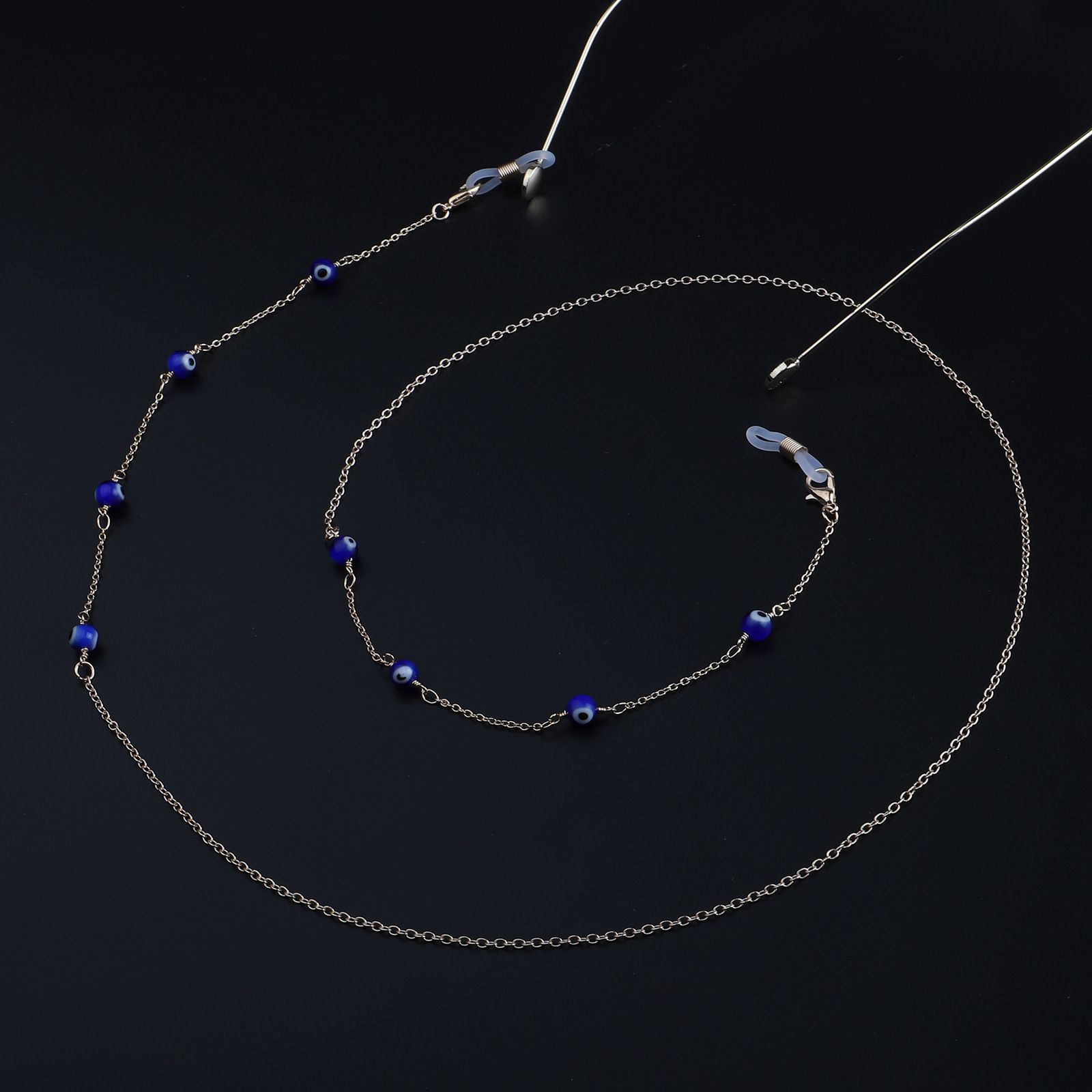 Gold-colored metal non-slip chain, with blue eye beads, for glasses and masks GL875