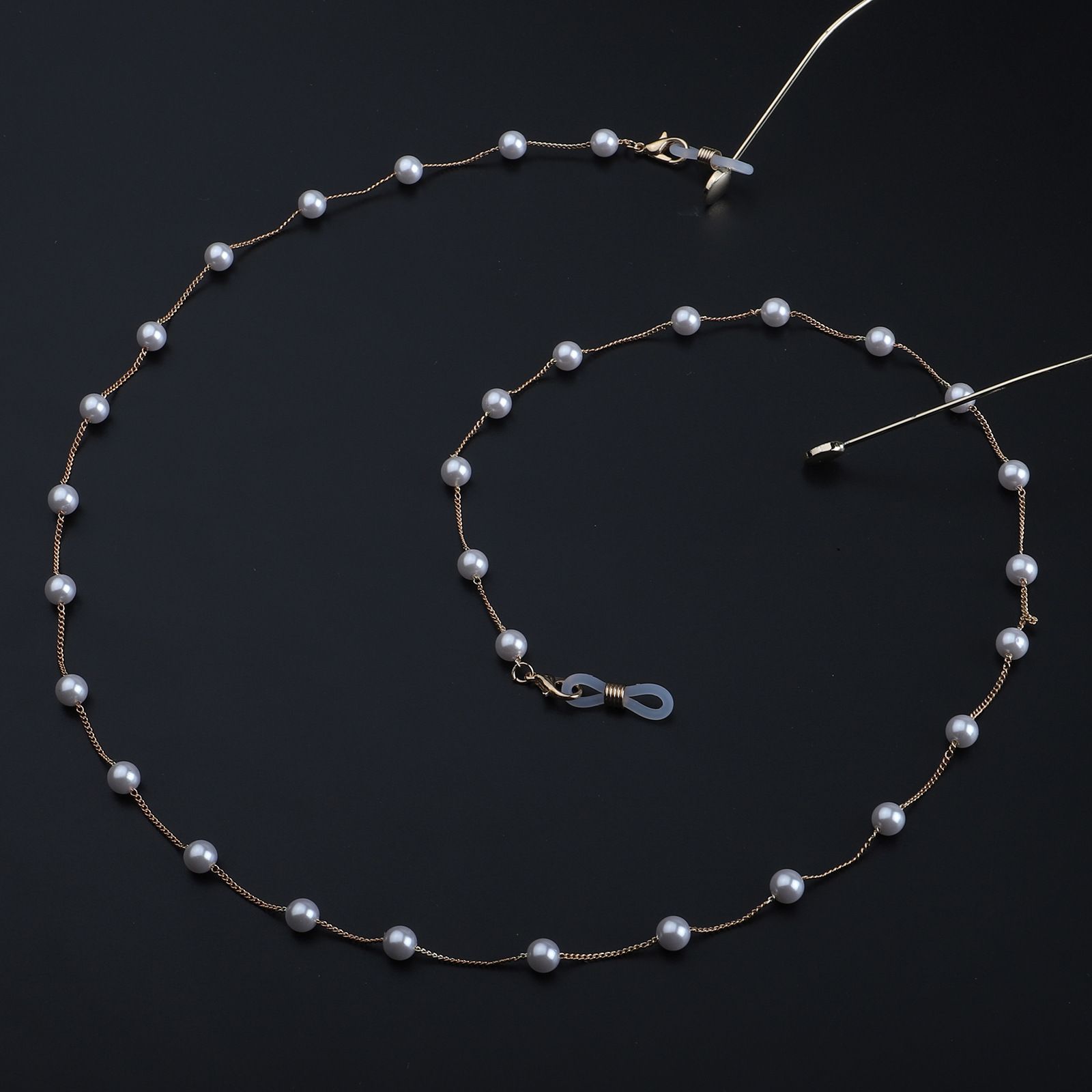 Gold-colored metal non-slip chain, with pearl, for glasses and masks GL878
