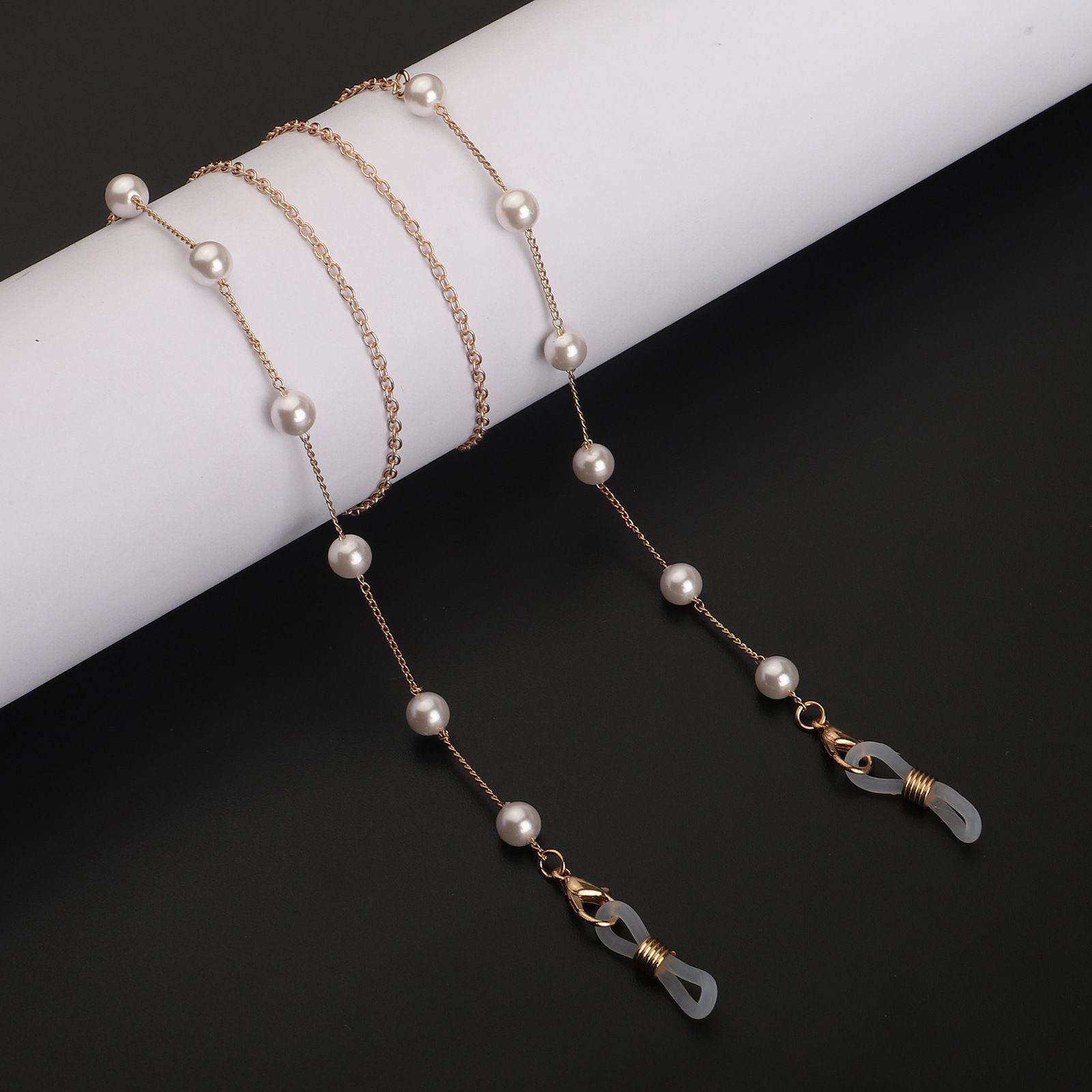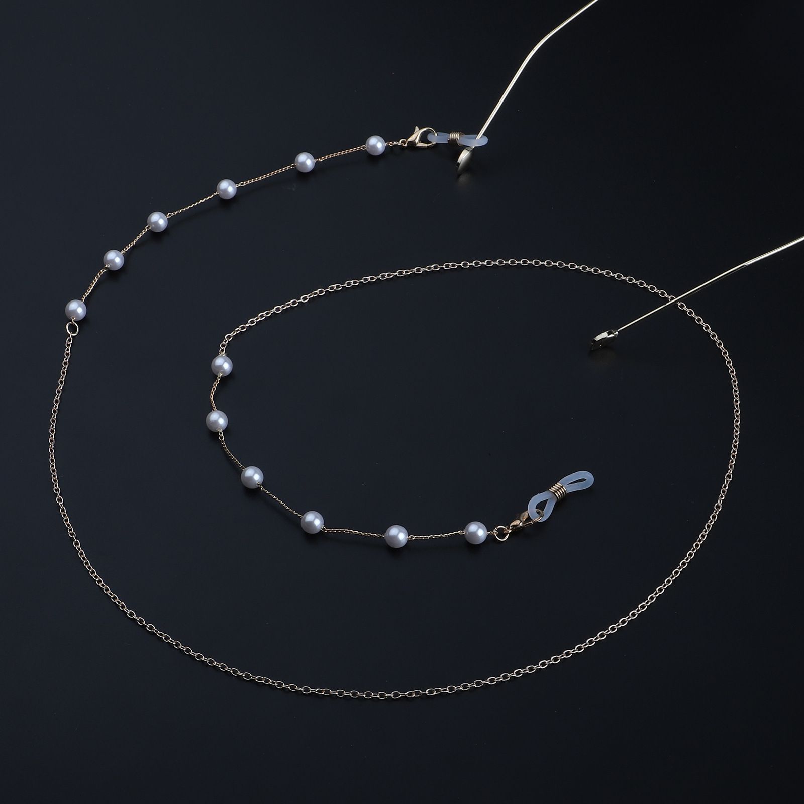 Gold-colored metal non-slip chain, with pearl, for glasses and masks GL879