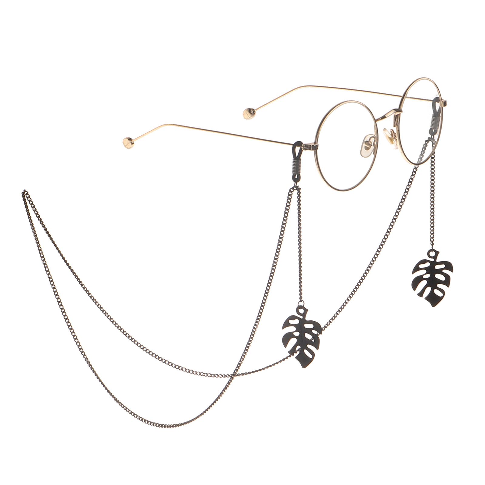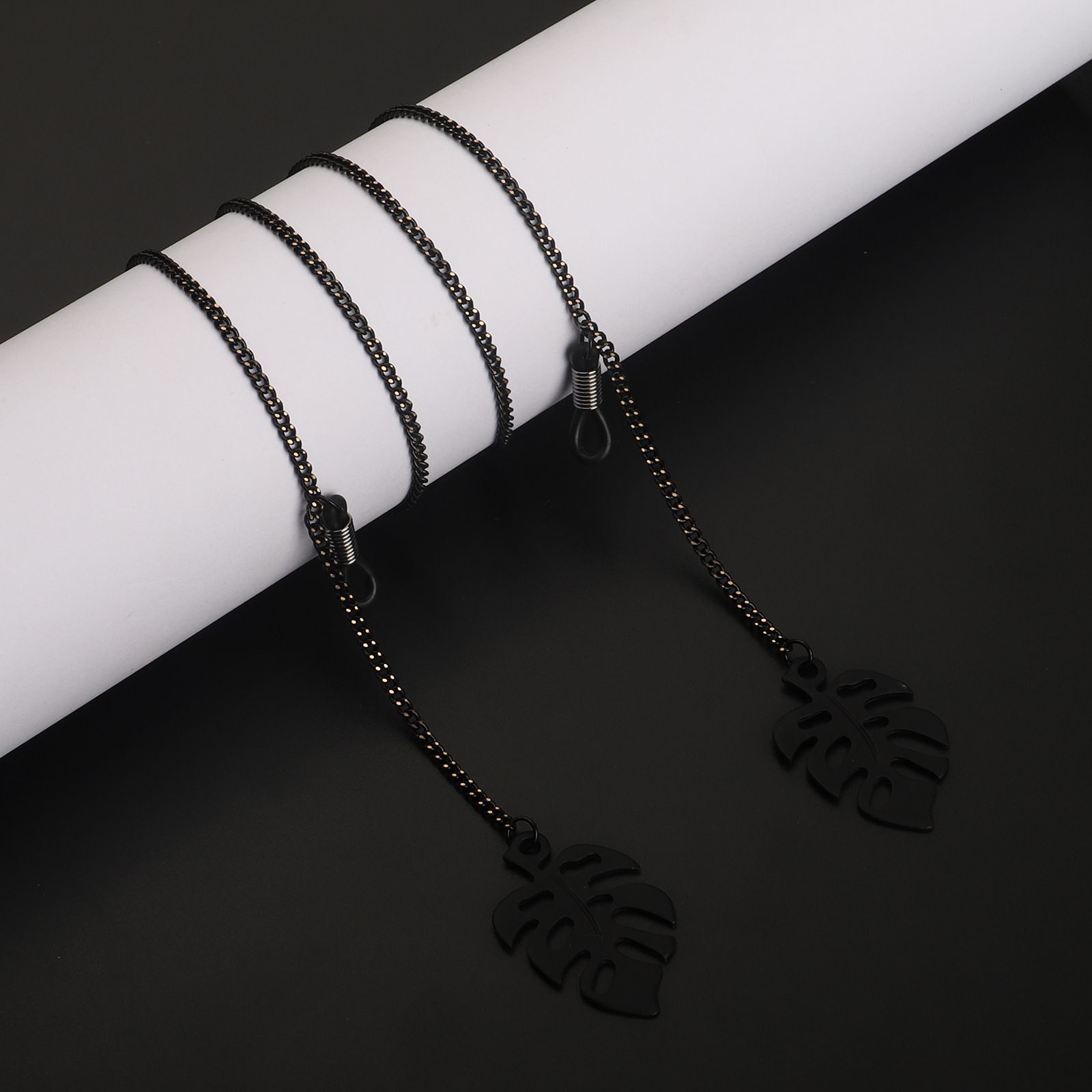 Black-colored metal non-slip chain, with pendant leaves, for glasses and masks GL887