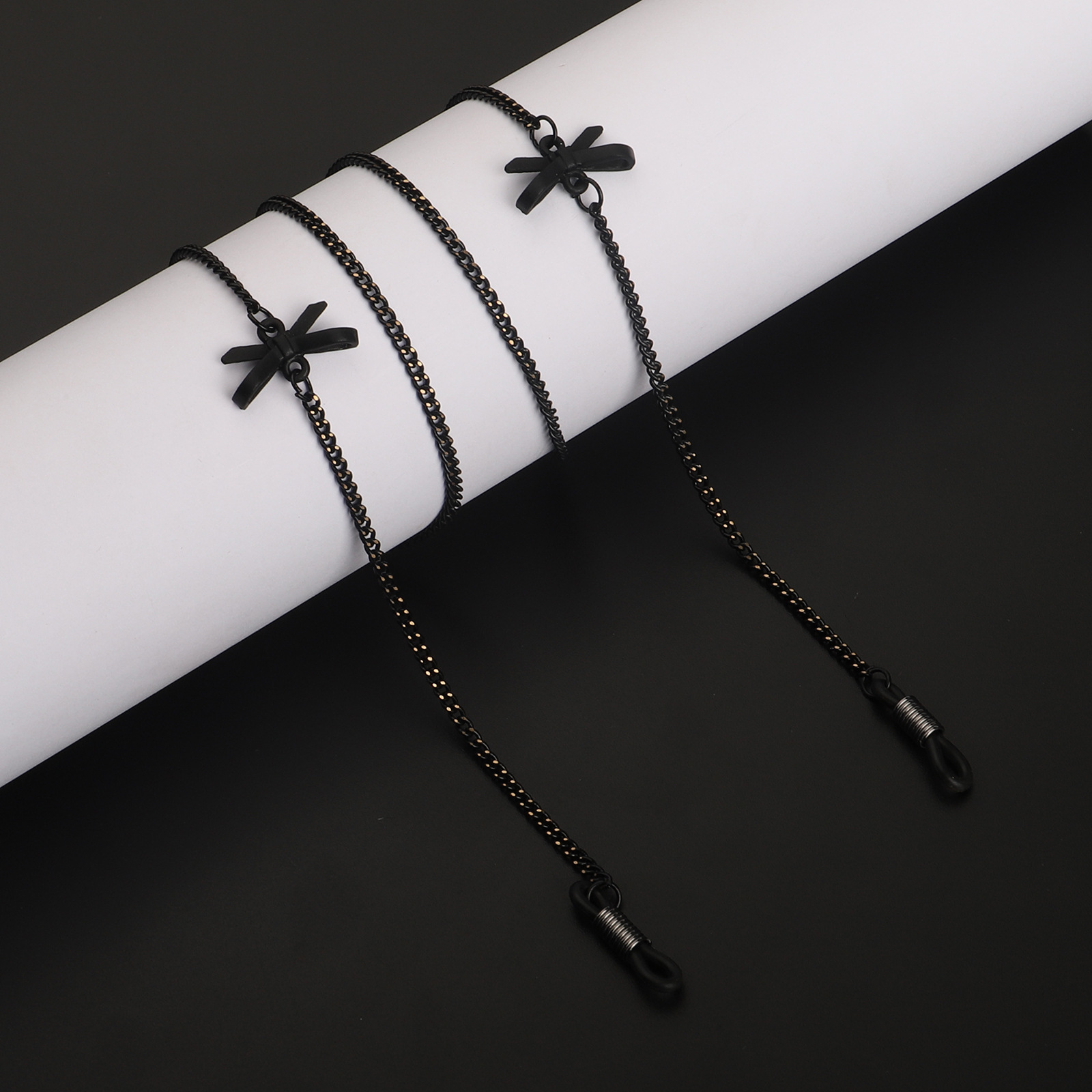 Black-colored metal non-slip chain, with pendant bow, for glasses and masks GL888