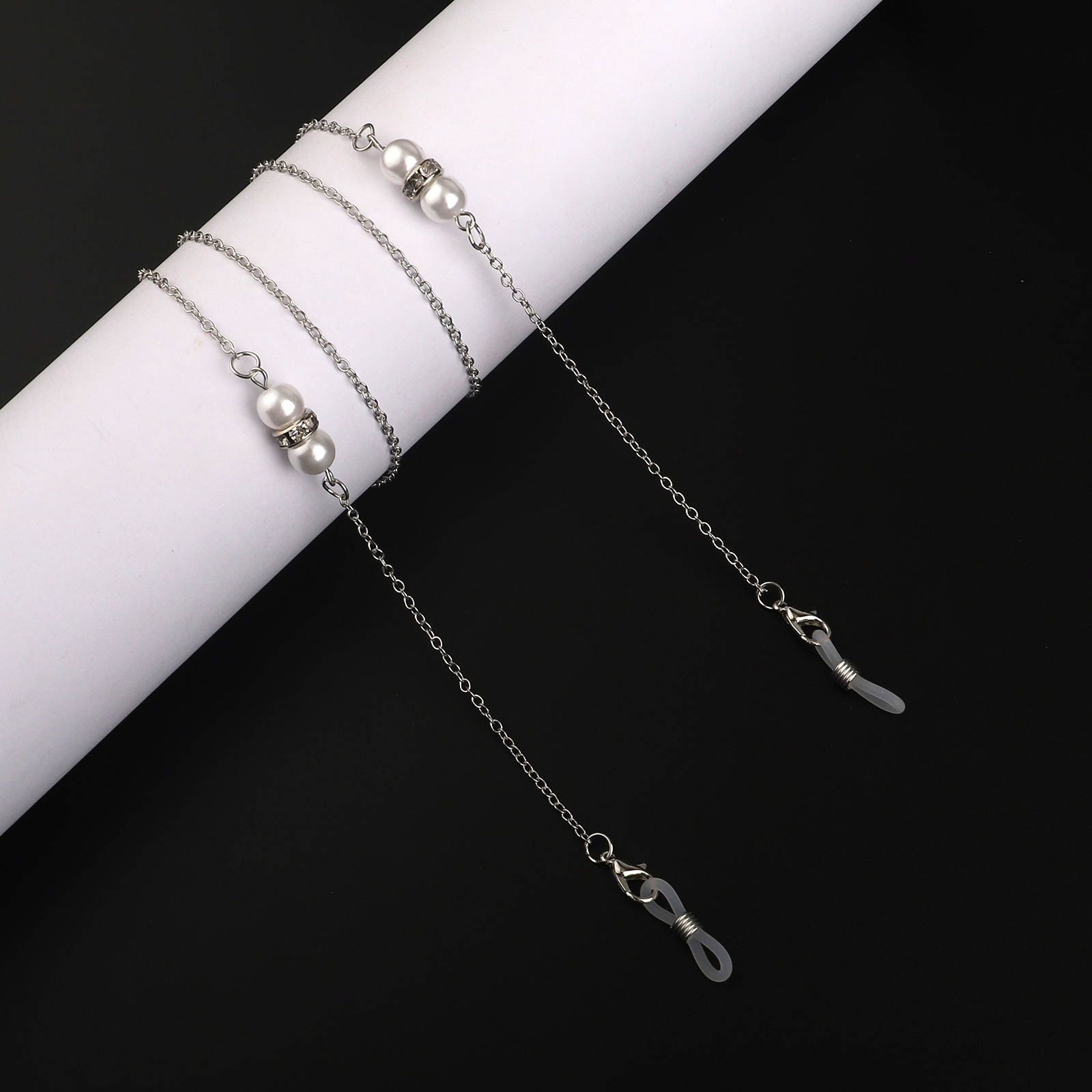 Metal non-slip chain, with pearl and rhinestones, for glasses and masks GL890