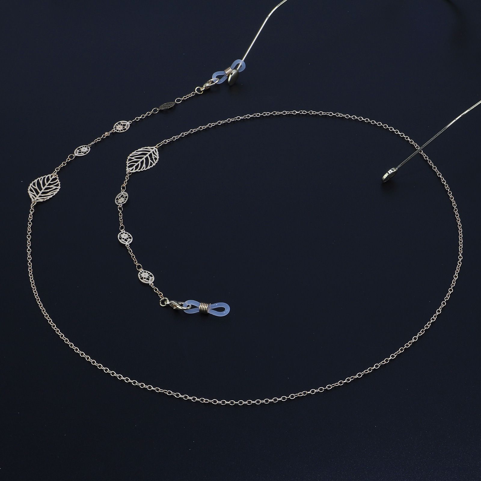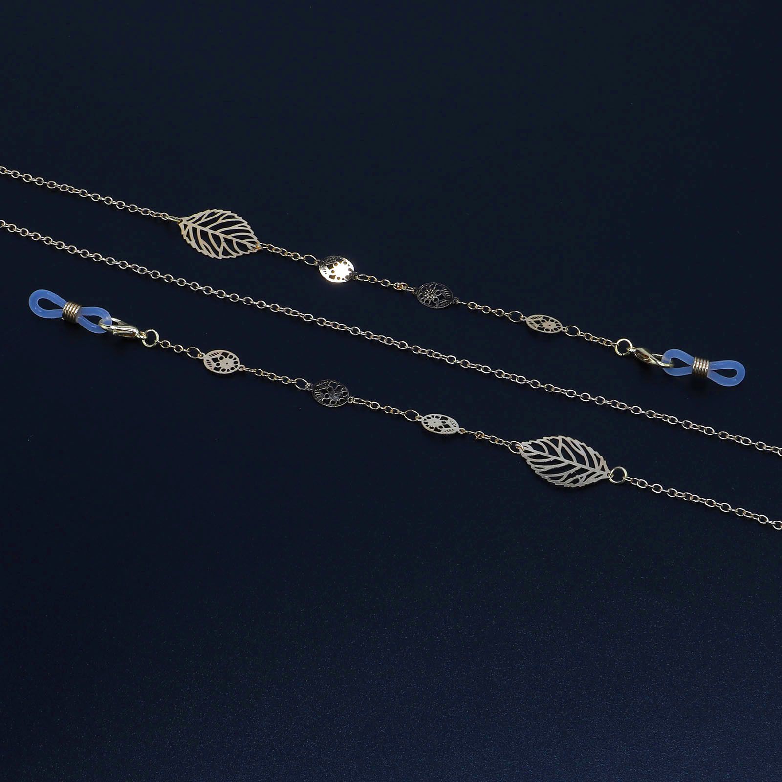 Gold-colored metal non-slip chain, with leaves, for glasses and masks GL902