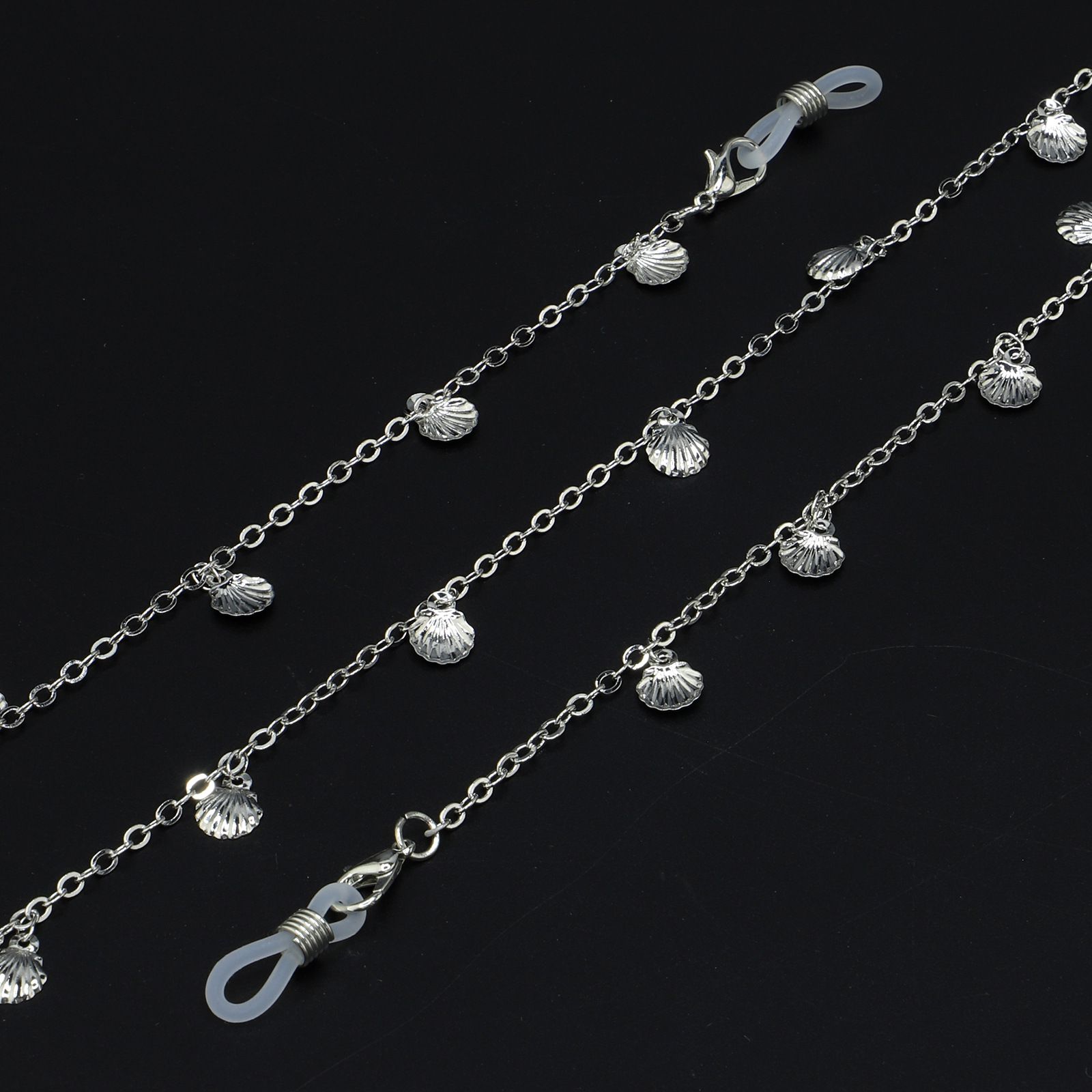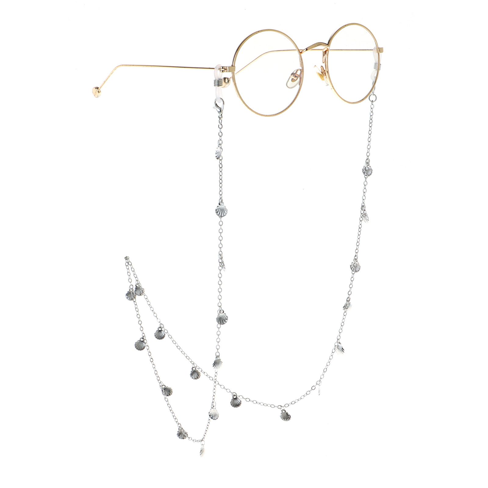 Silver-colored metal non-slip chain, with silver shell, for glasses and masks GL921