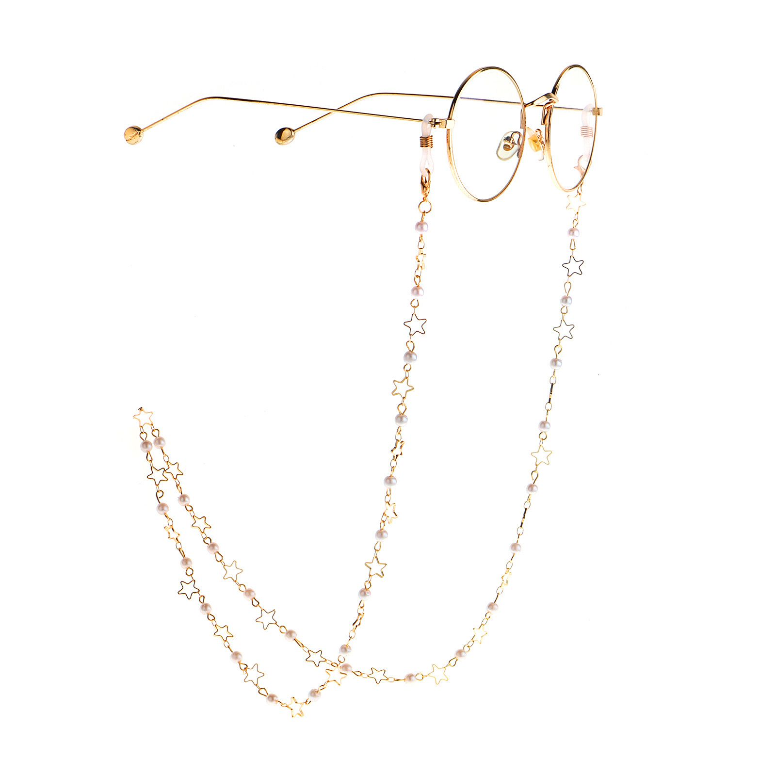Metal non-slip chain, with pearl and star, for glasses and masks GL932