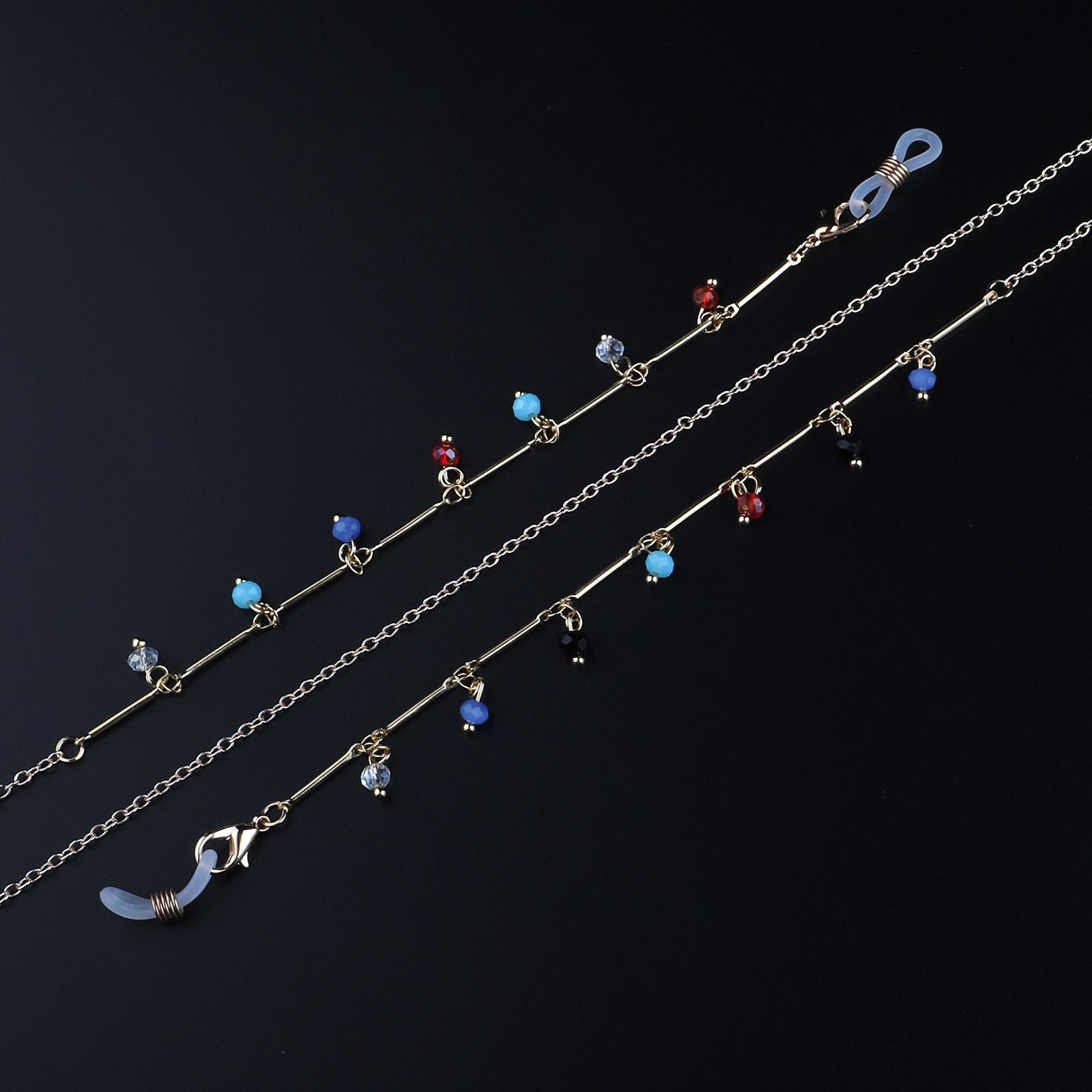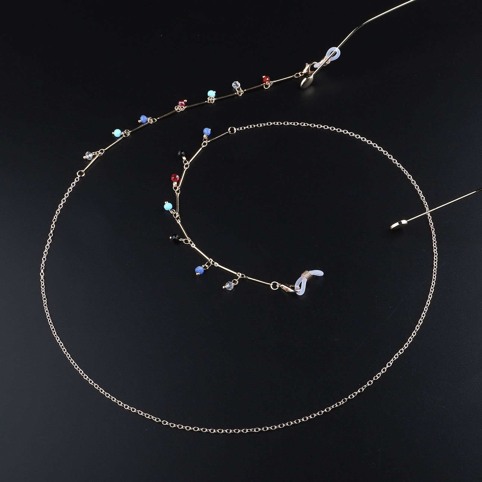 Metal non-slip chain, with colorful crystal, for glasses and masks GL934