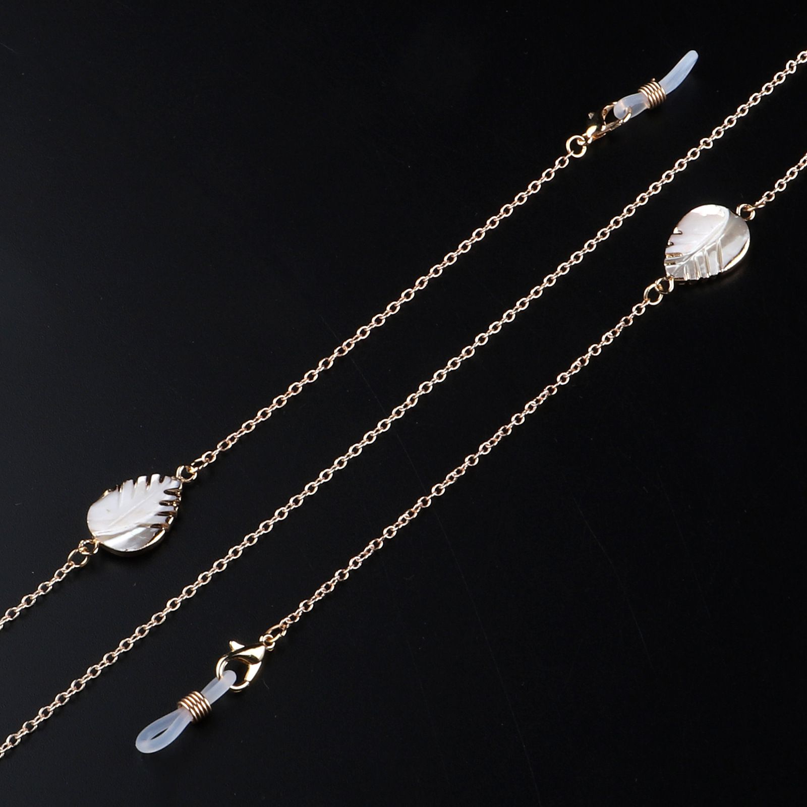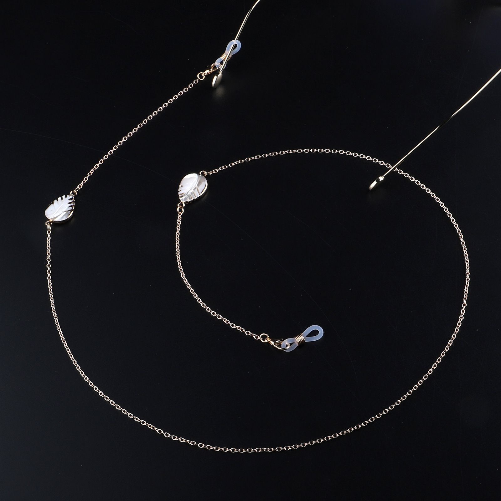 Gold-colored metal non-slip chain, with pendant white shell, for glasses and masks GL944