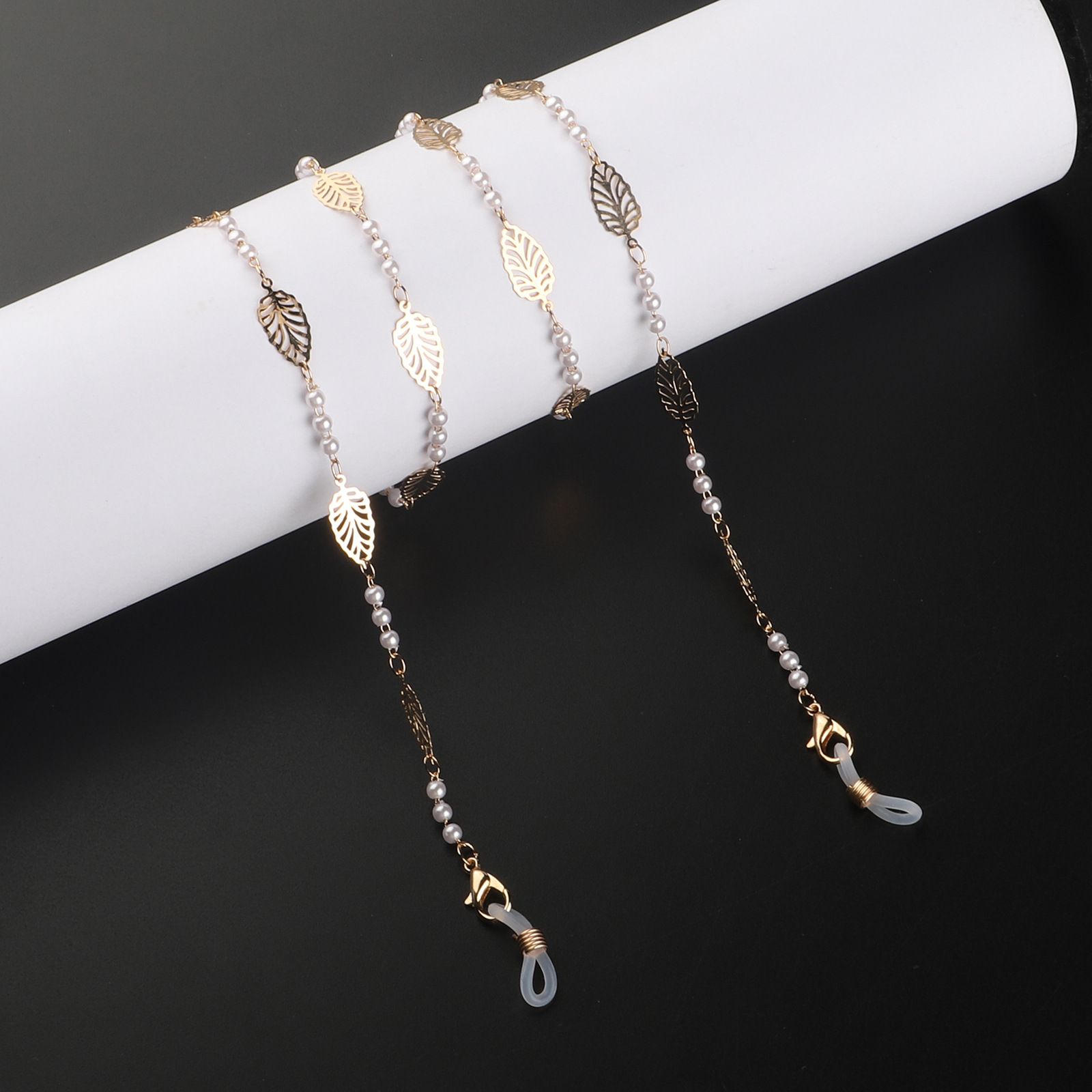 Metal non-slip chain with gold hollow leaves pearl for glasses and masks GL945