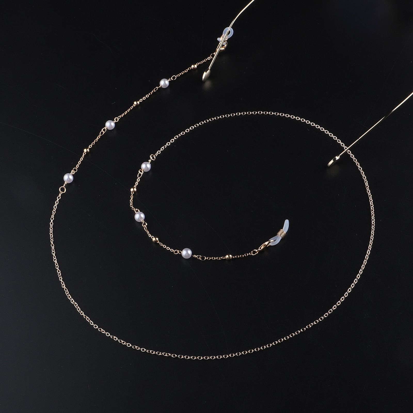 Gold-colored metal non-slip chain, with pearl and beads, for glasses and masks GL947