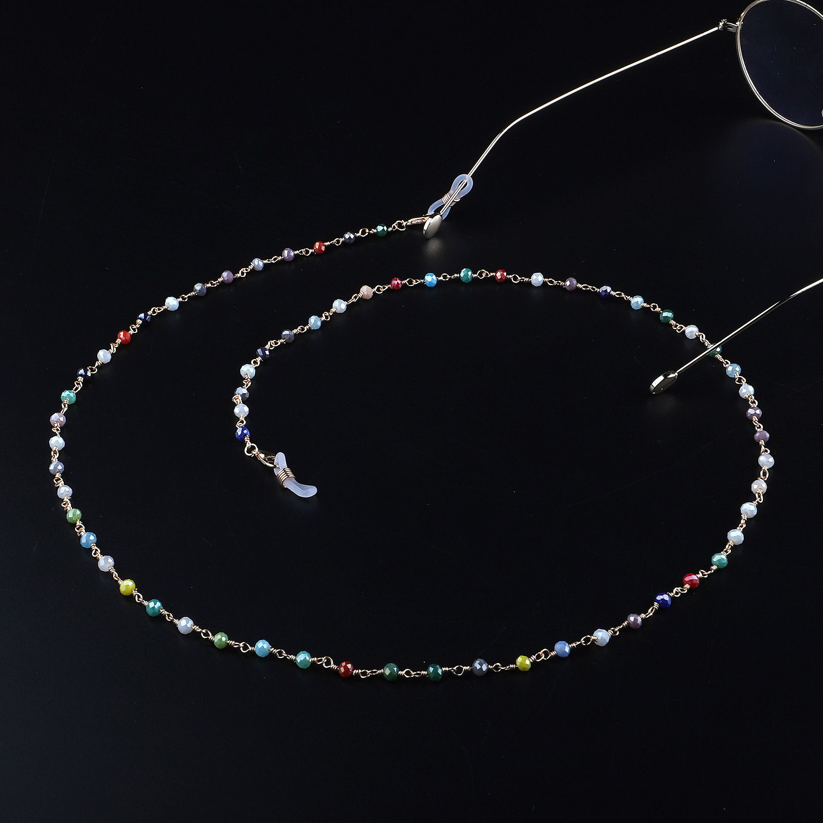 Gold metal non-slip chain, with colored beads, for glasses and masks GL965