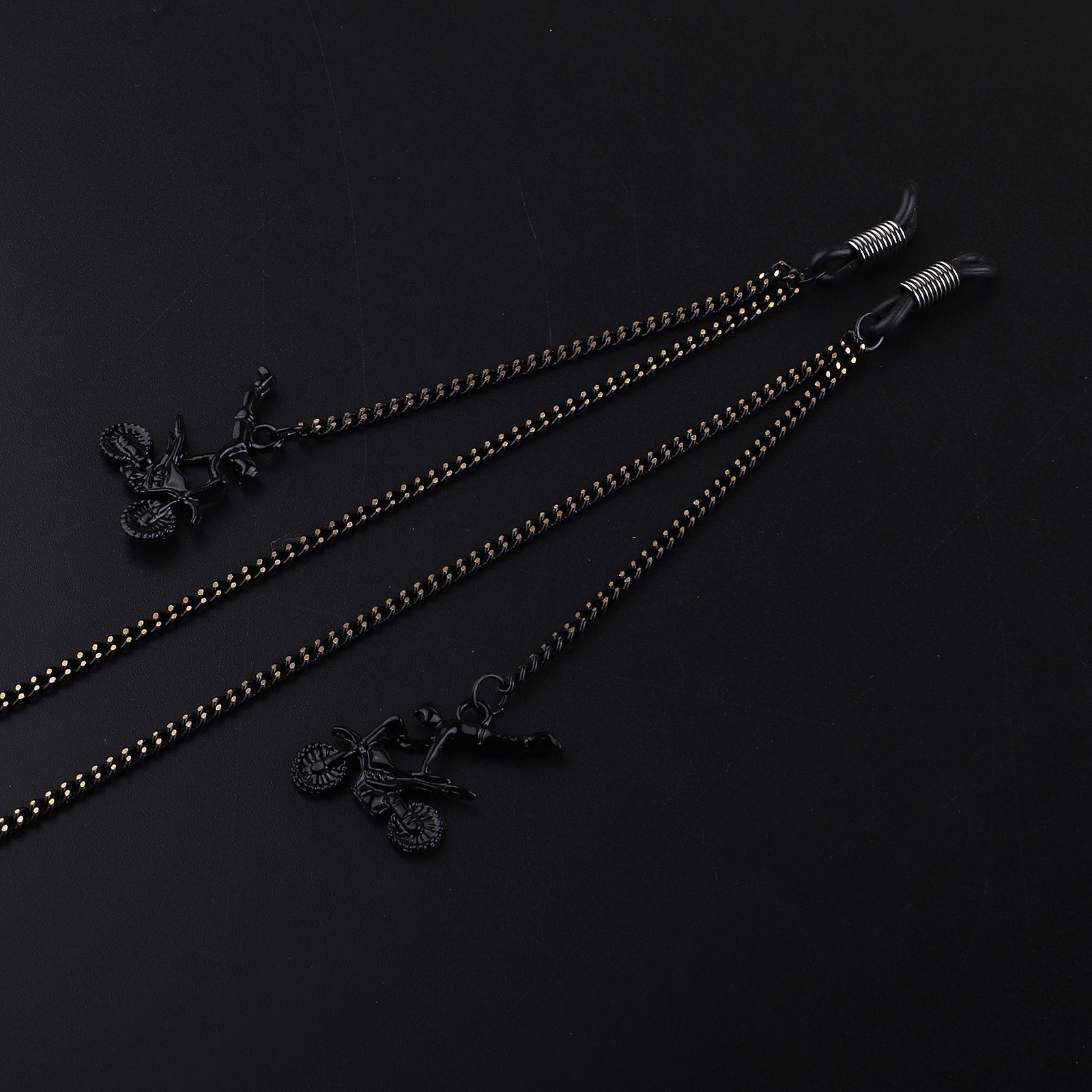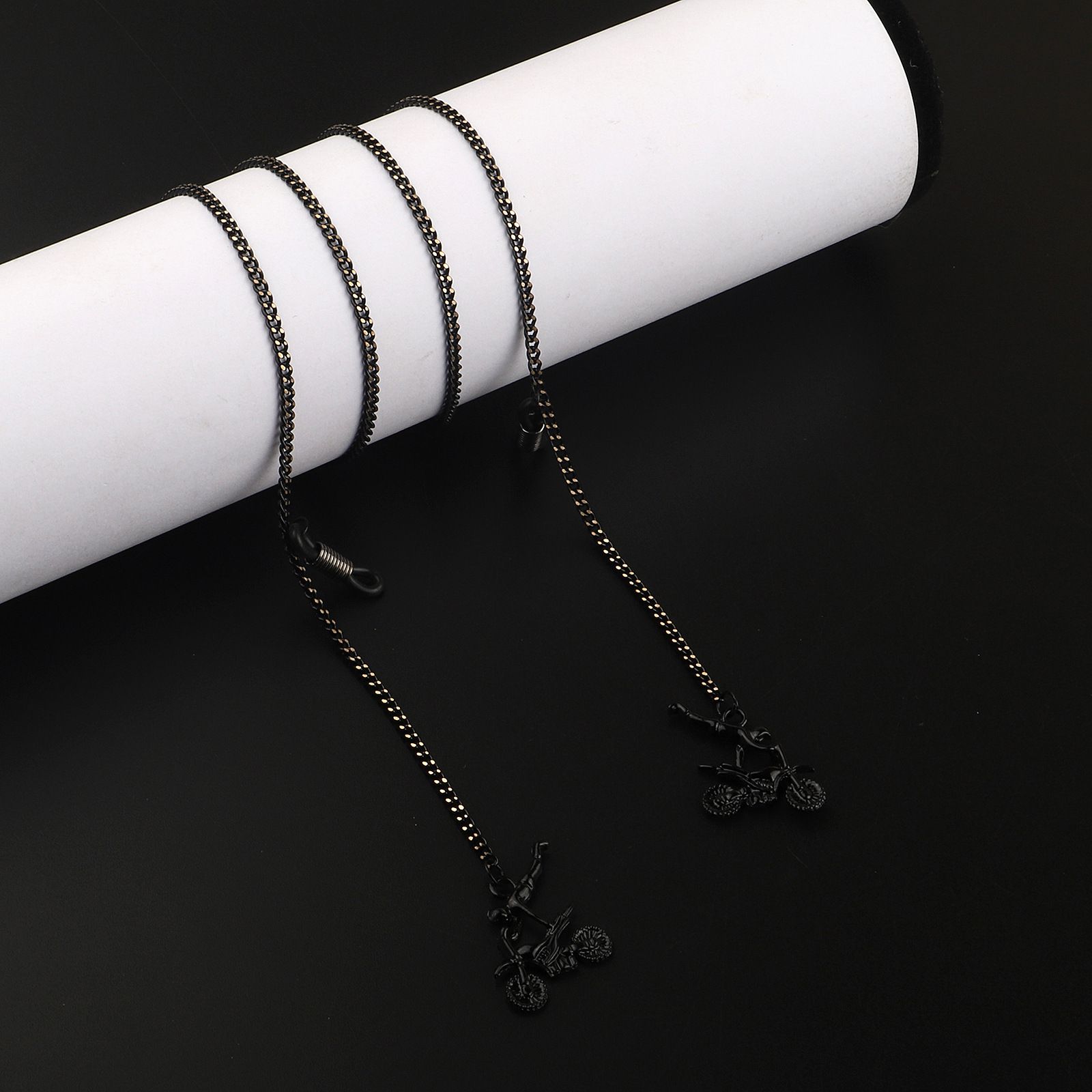 Black-colored metal non-slip chain, with pendant motorcycle, for glasses and masks GL982