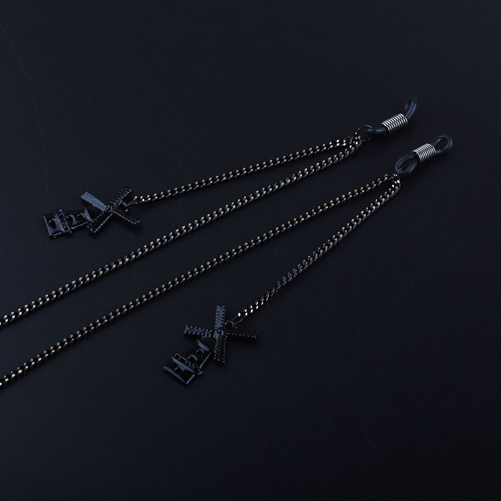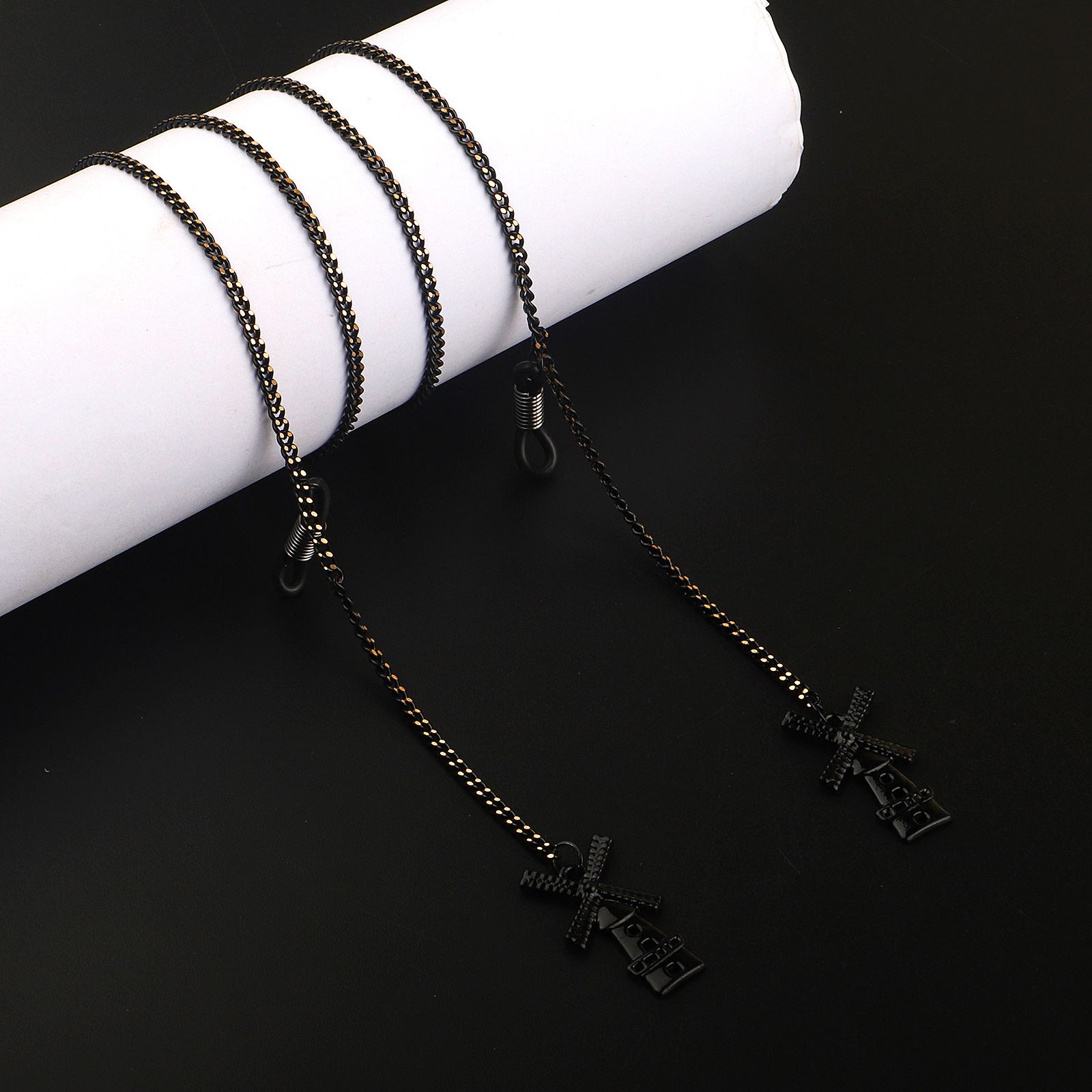 Black-colored metal non-slip chain, with pendant windmill, for glasses and masks GL983
