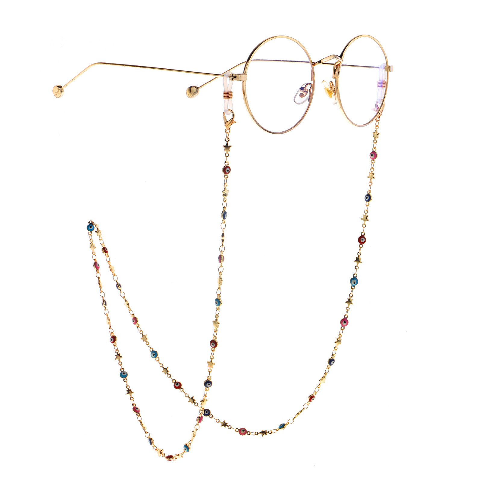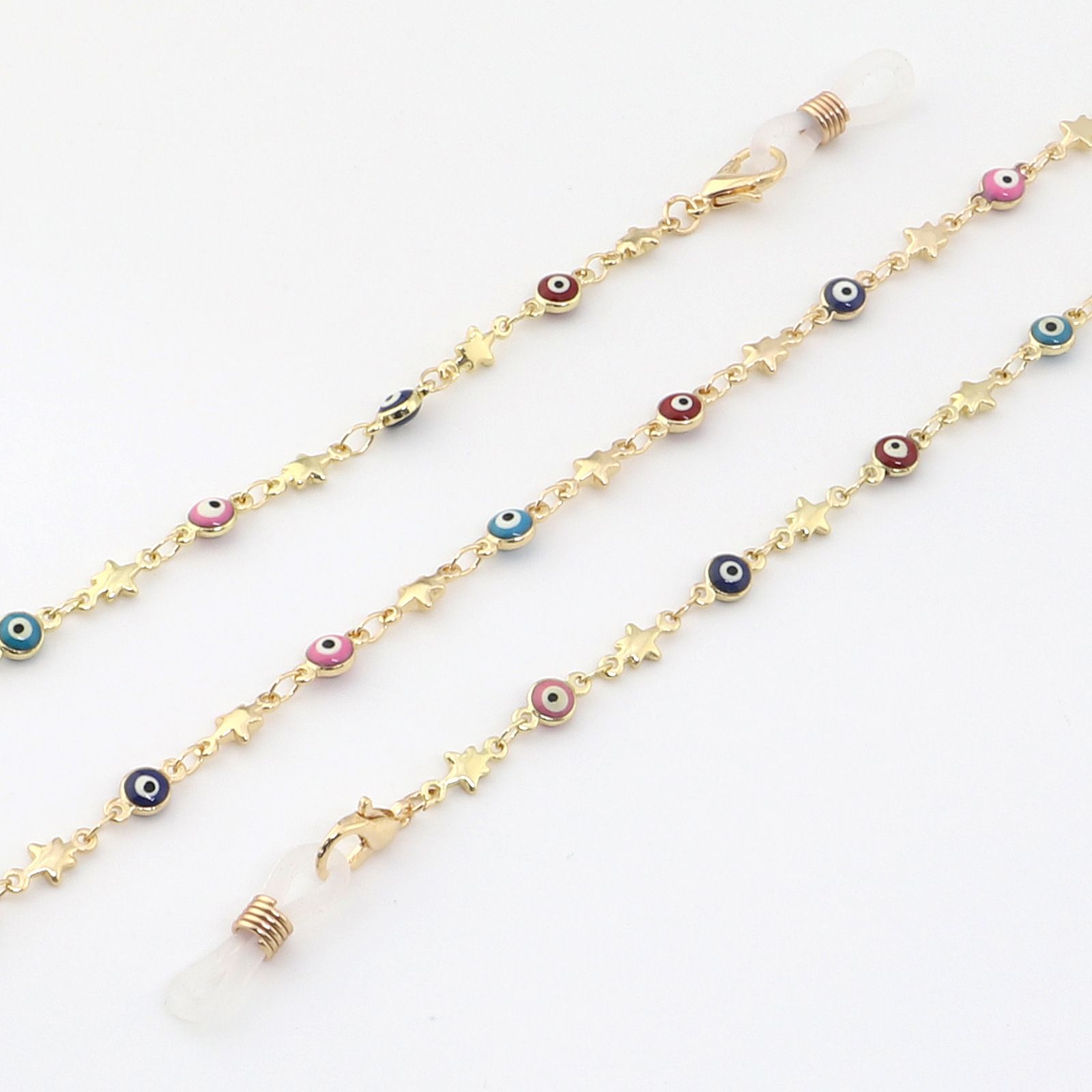 Gold metal non-slip chain, with colored eyes and star, for glasses and masks GL984