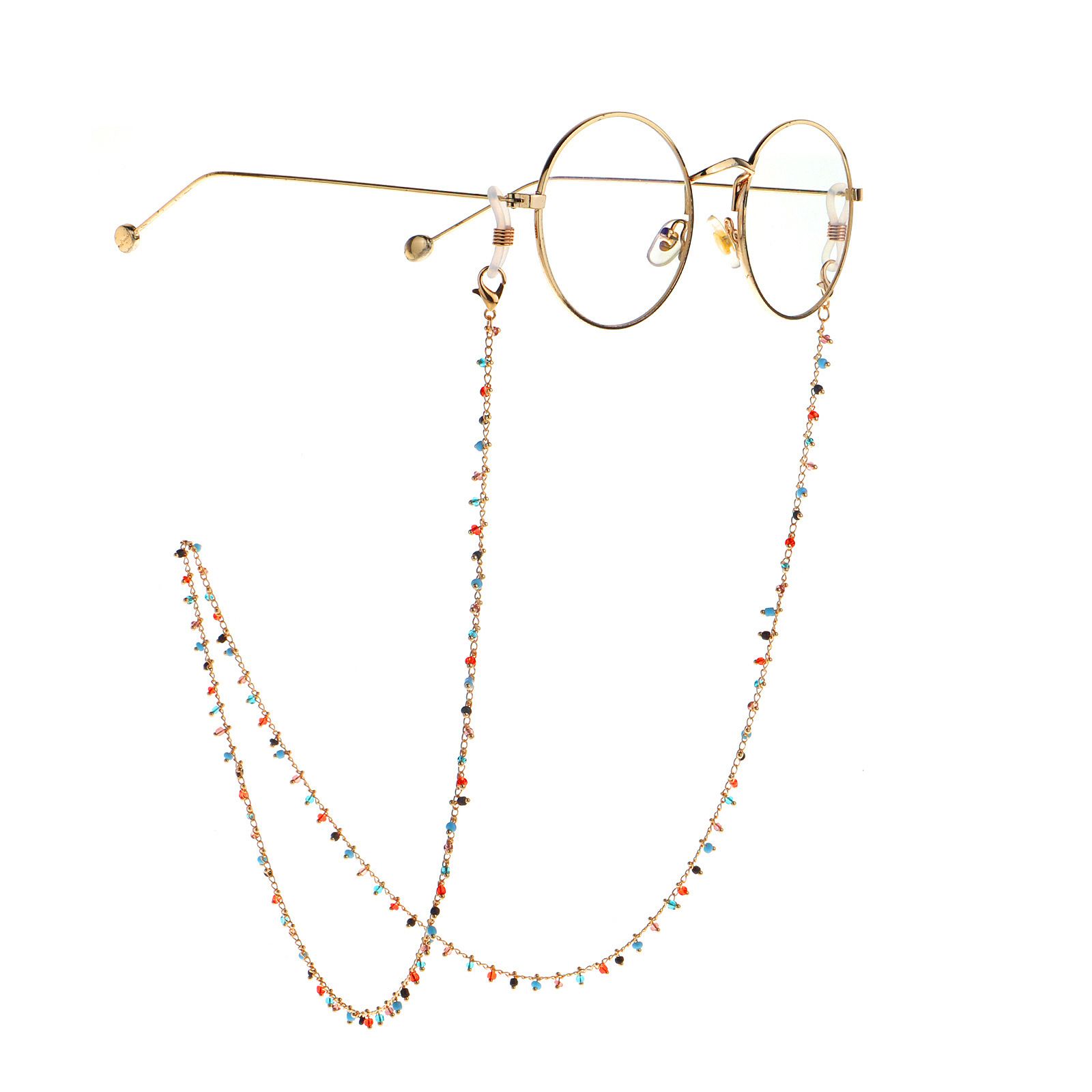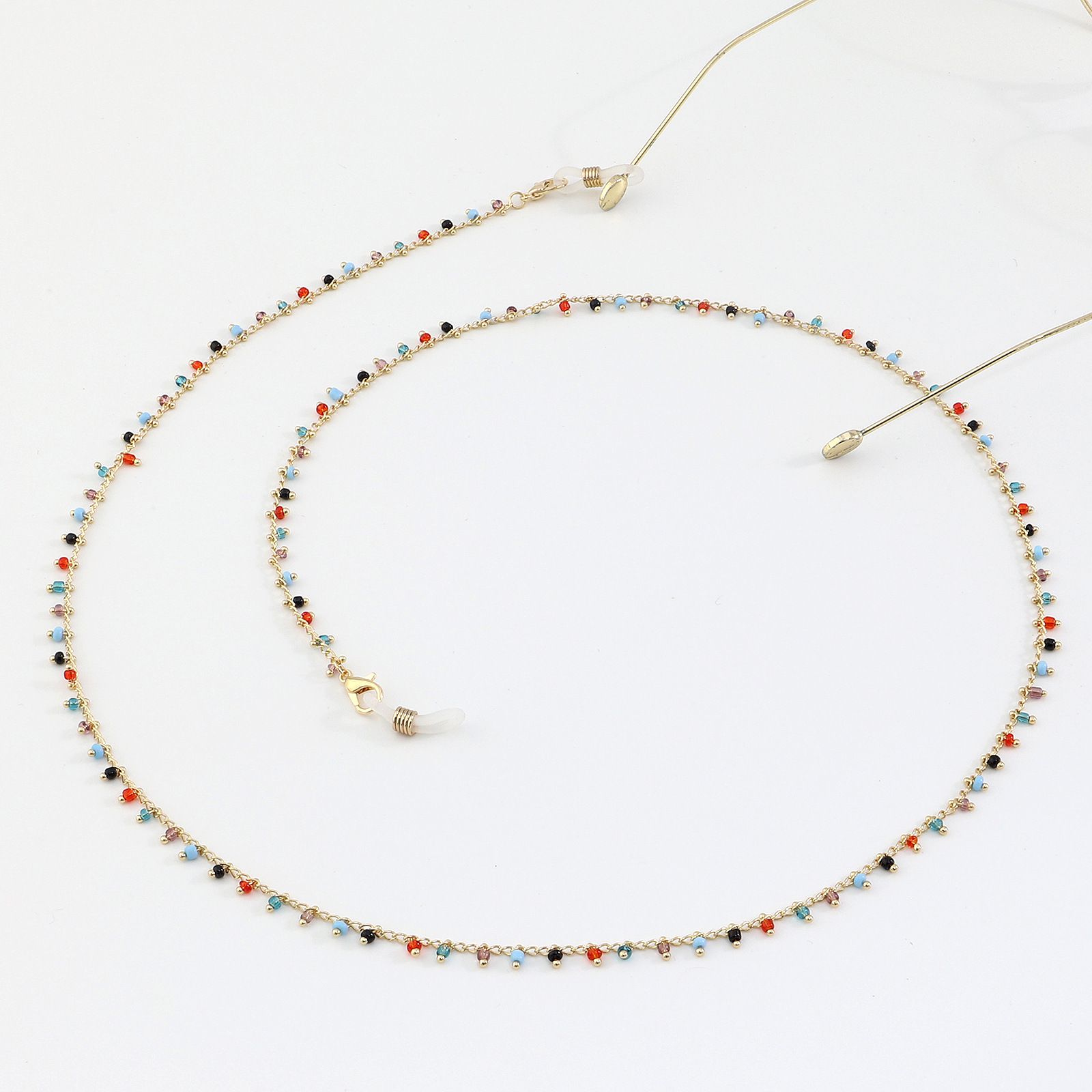 Gold-colored metal non-slip chain, with small colored beads, for glasses and masks GL985
