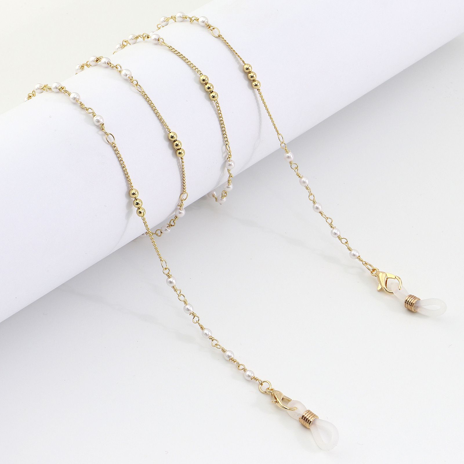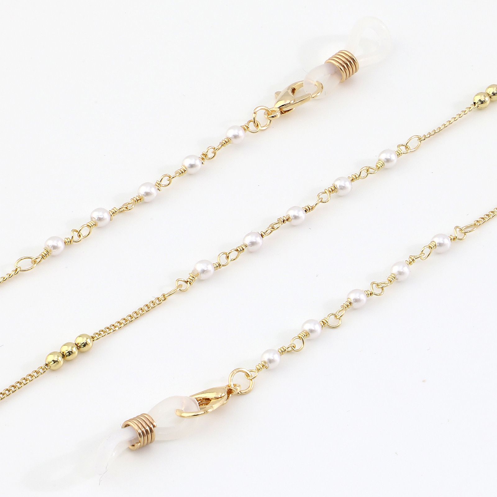 Metal non-slip chain gold, with cooper and pearl beads, for glasses and masks GL993