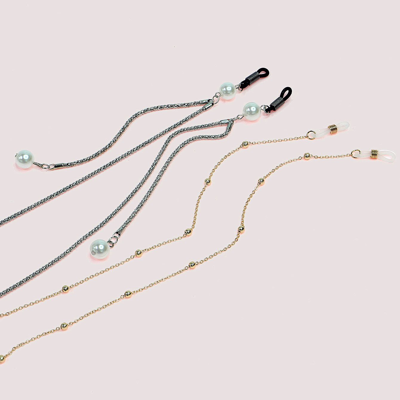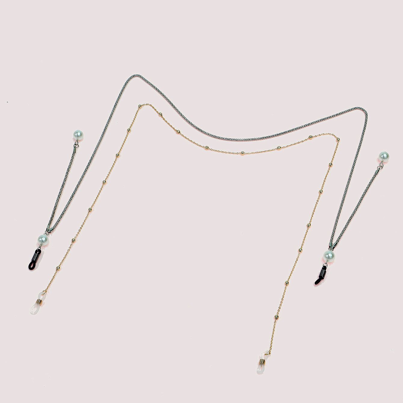 Metal non-slip chain set 2-piece, with pearl and beads, for glasses and masks GM008
