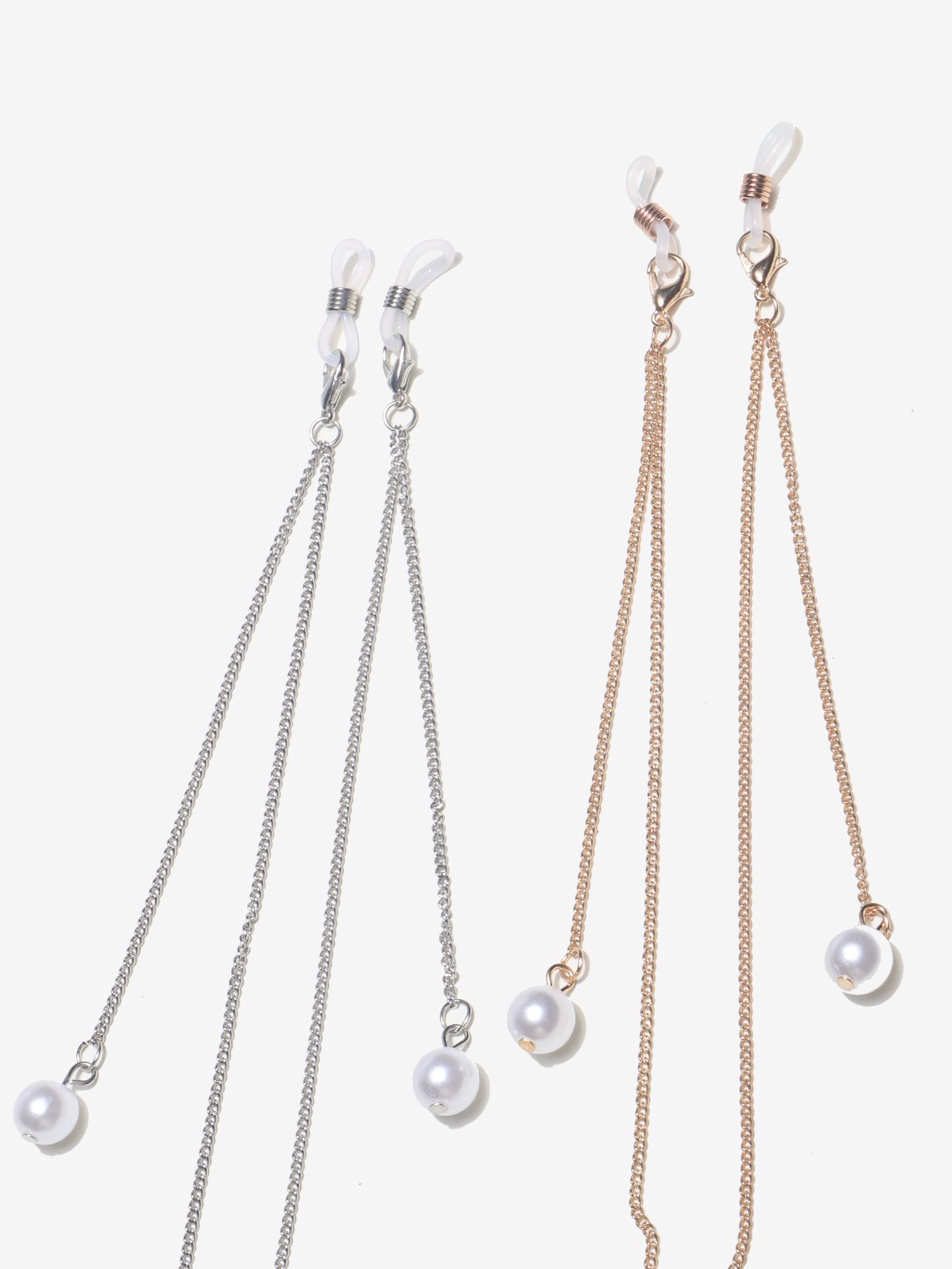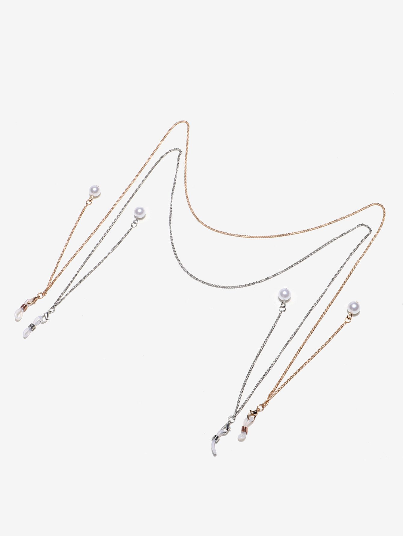 Glasses chain with pearl set of two-piece golden and silver GM024