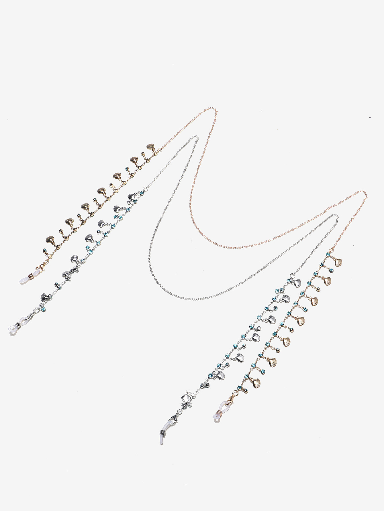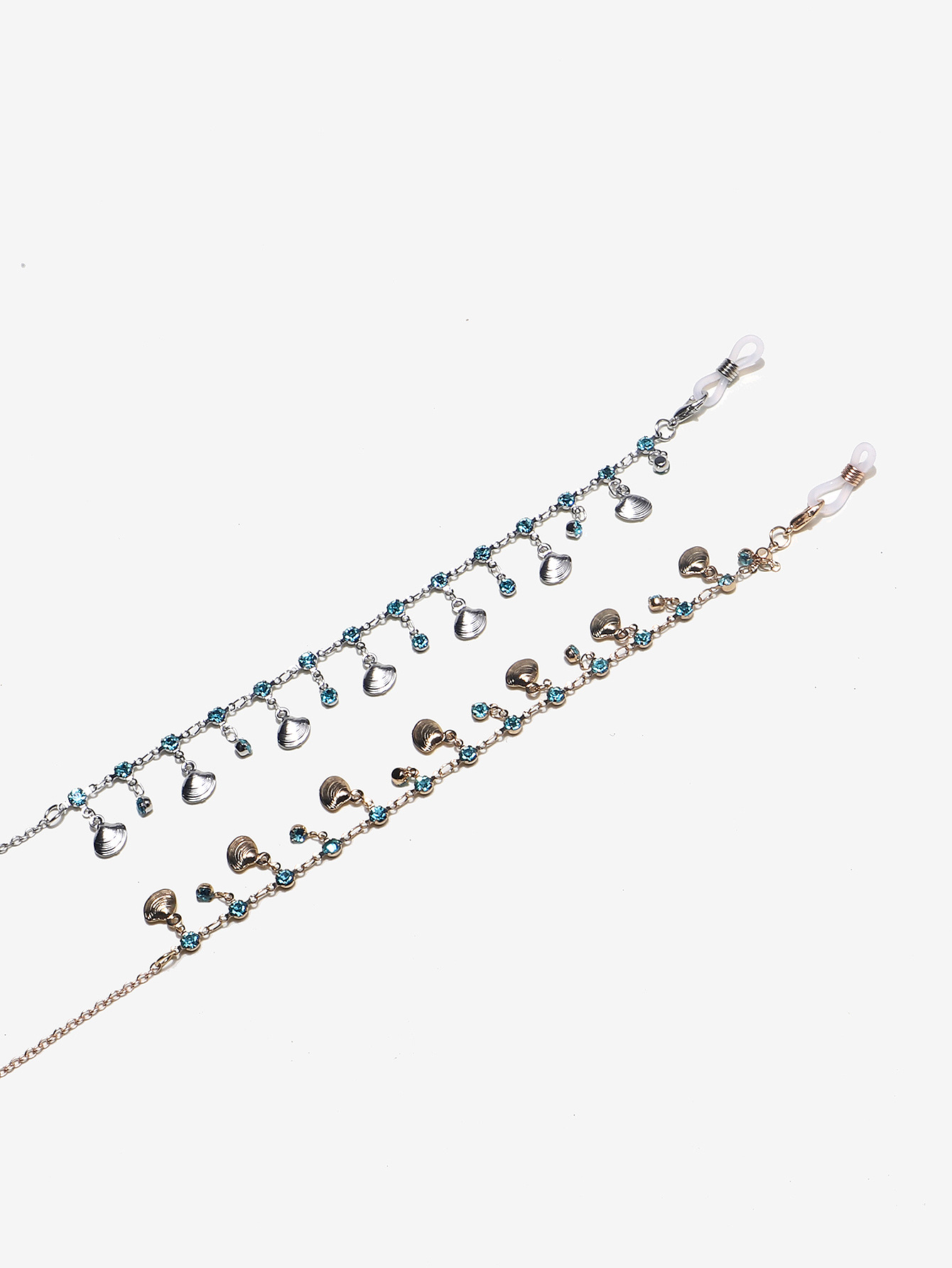 Glasses chain with rhinestones and shells set of two-piece golden and silver GM033