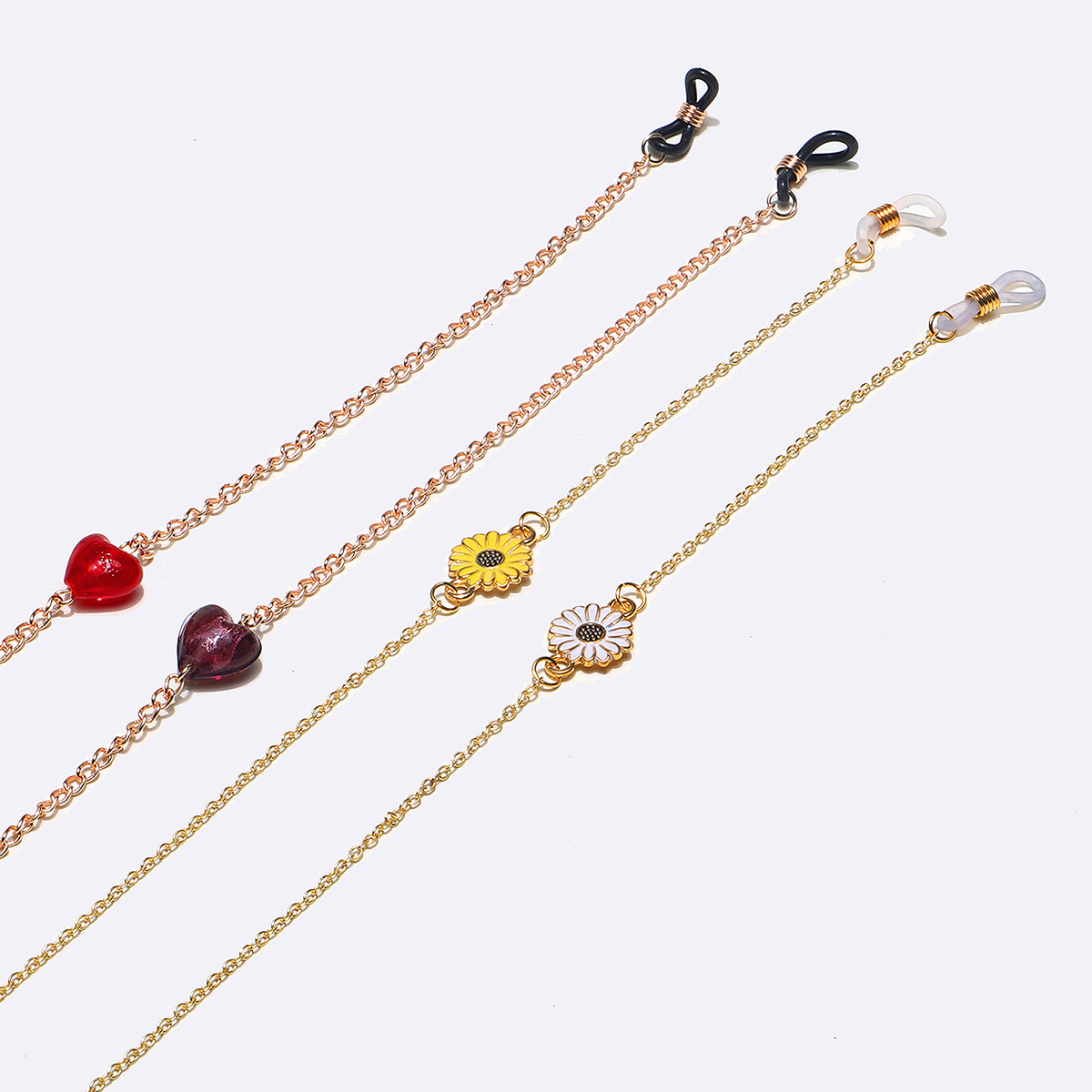 Set of two glasses chain with color hearts and daisies GM053(1)