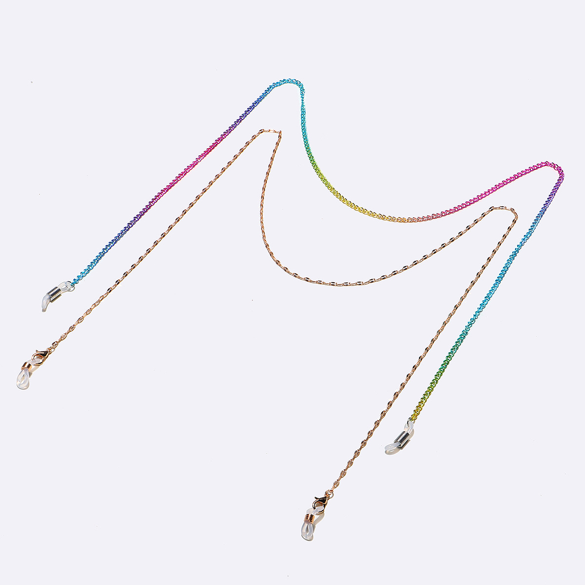 Set of two golden and colorful glasses chain GM054