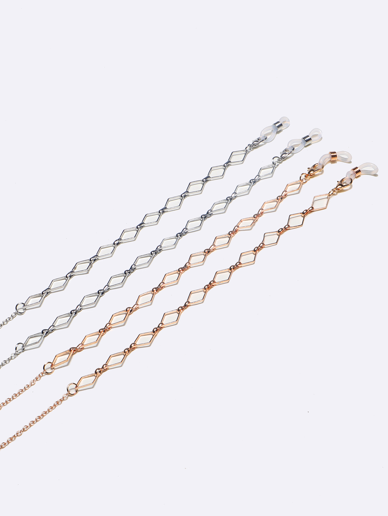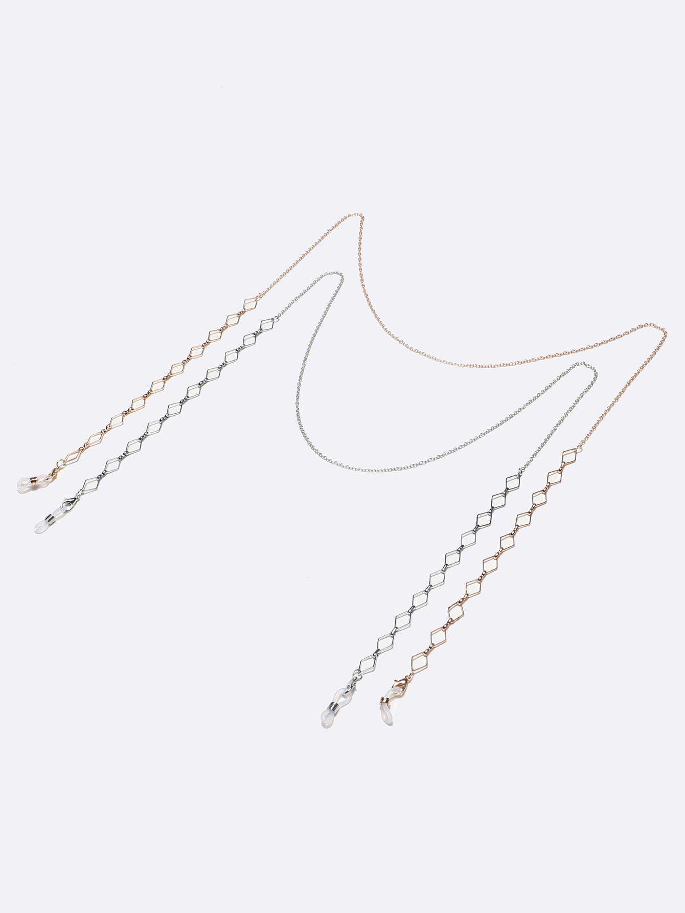 Set of two gold and silver glasses chain with hollow rhombuses GM097
