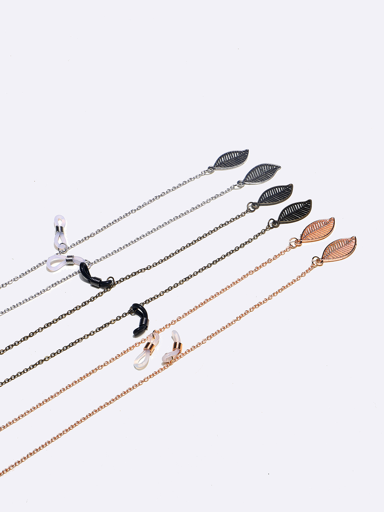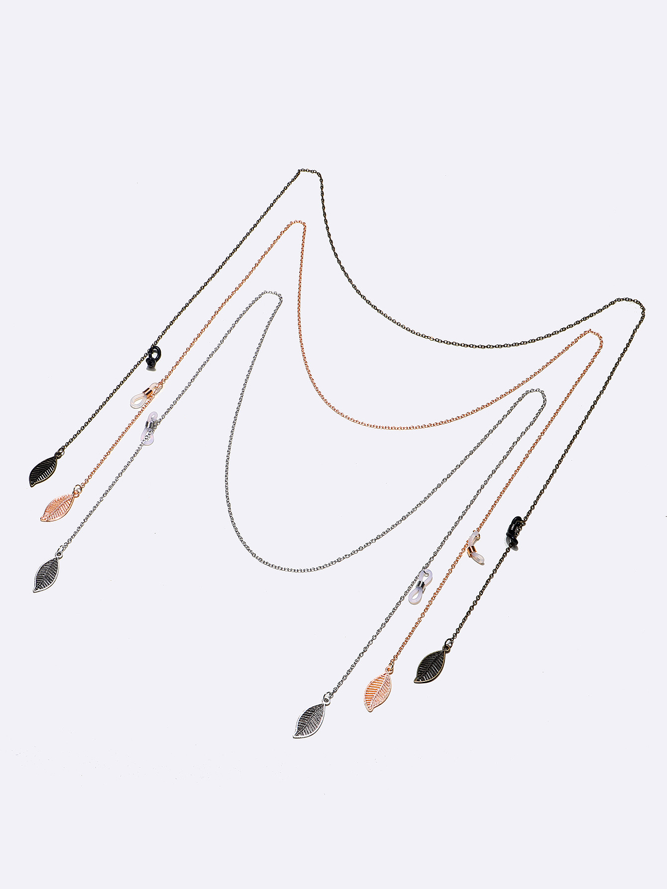 Set of three gold, silver and black glasses chain with hollow leaves GM098