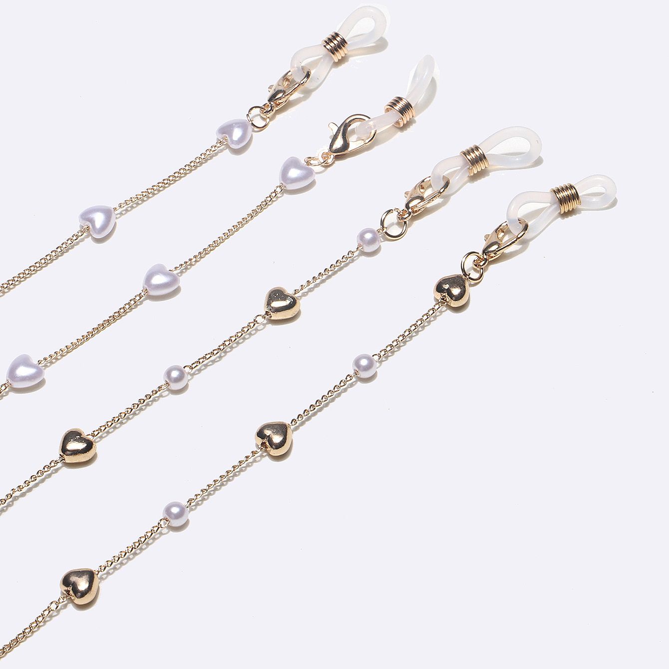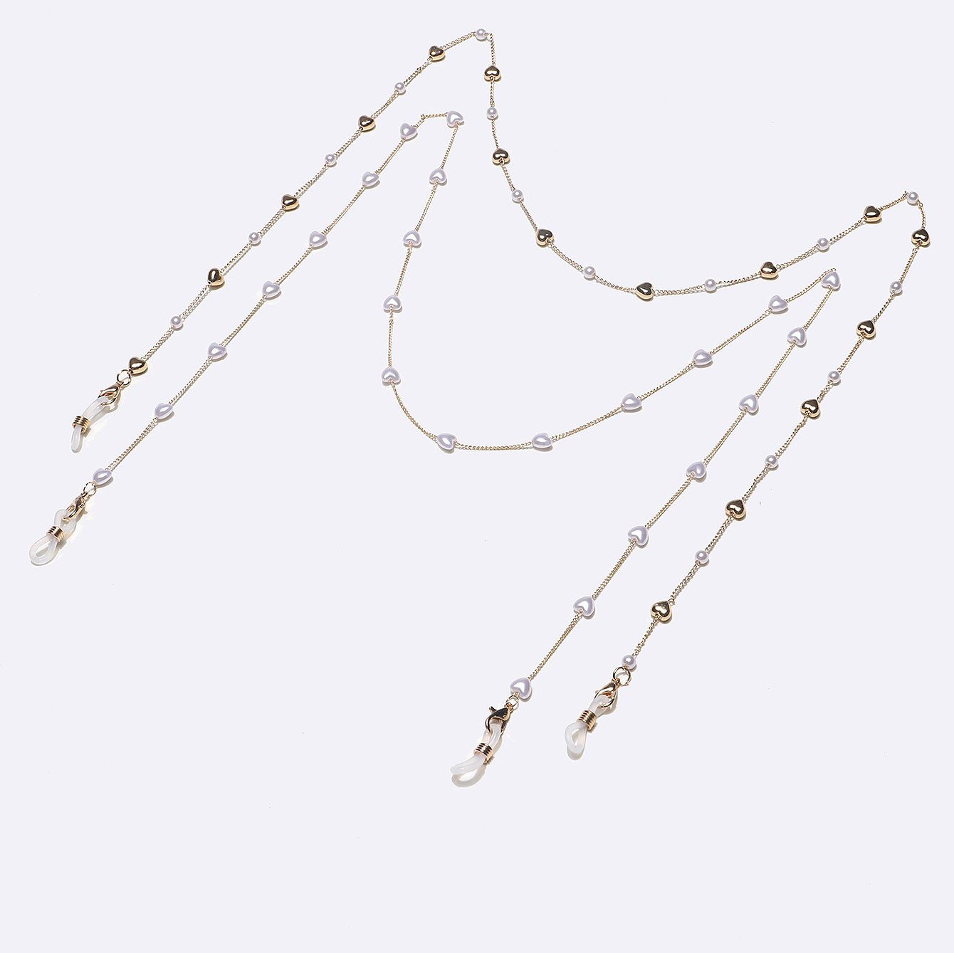 Gold-colored metal non-slip chain, 2 piece set with pearl, for glasses and masks GM113