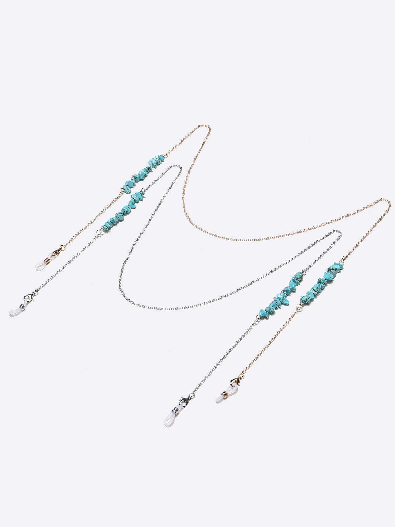 Set of two gold and silver glasses chain with turquoise stones GM116