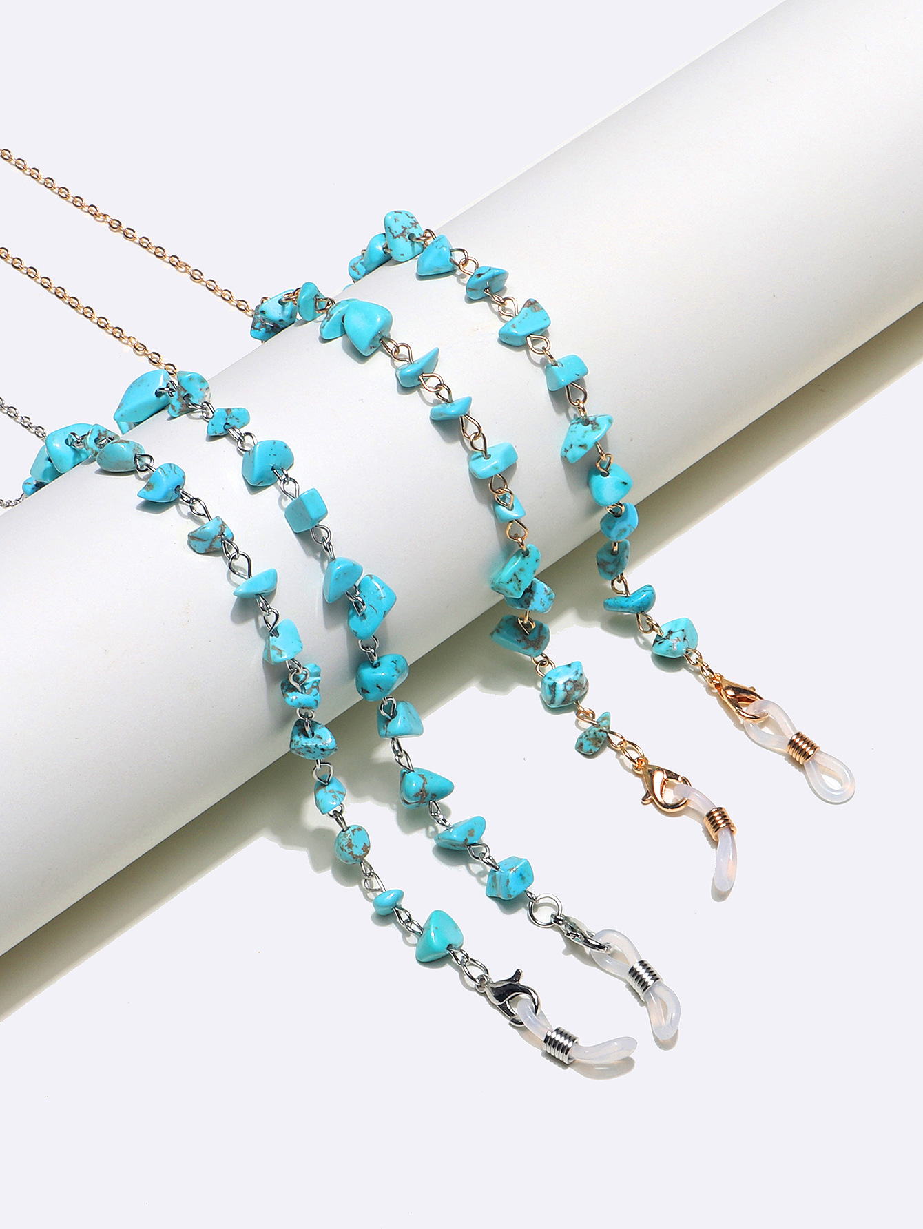 Set of two gold and silver glasses chain with natural turquoise stones GM127 GM127 Whole set/整套 - ¥ 22.40 В наличии