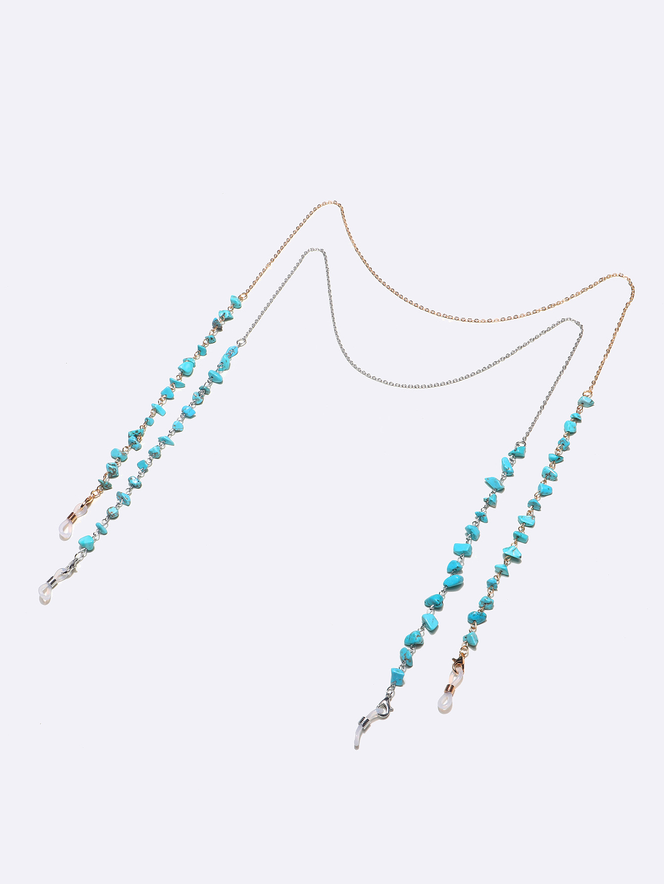 Set of two gold and silver glasses chain with natural turquoise stones GM127
