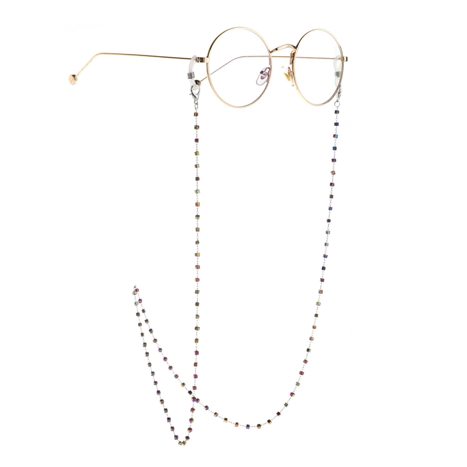 Metal non-slip chain silver, with colorful square crystal, for glasses and masks GS041