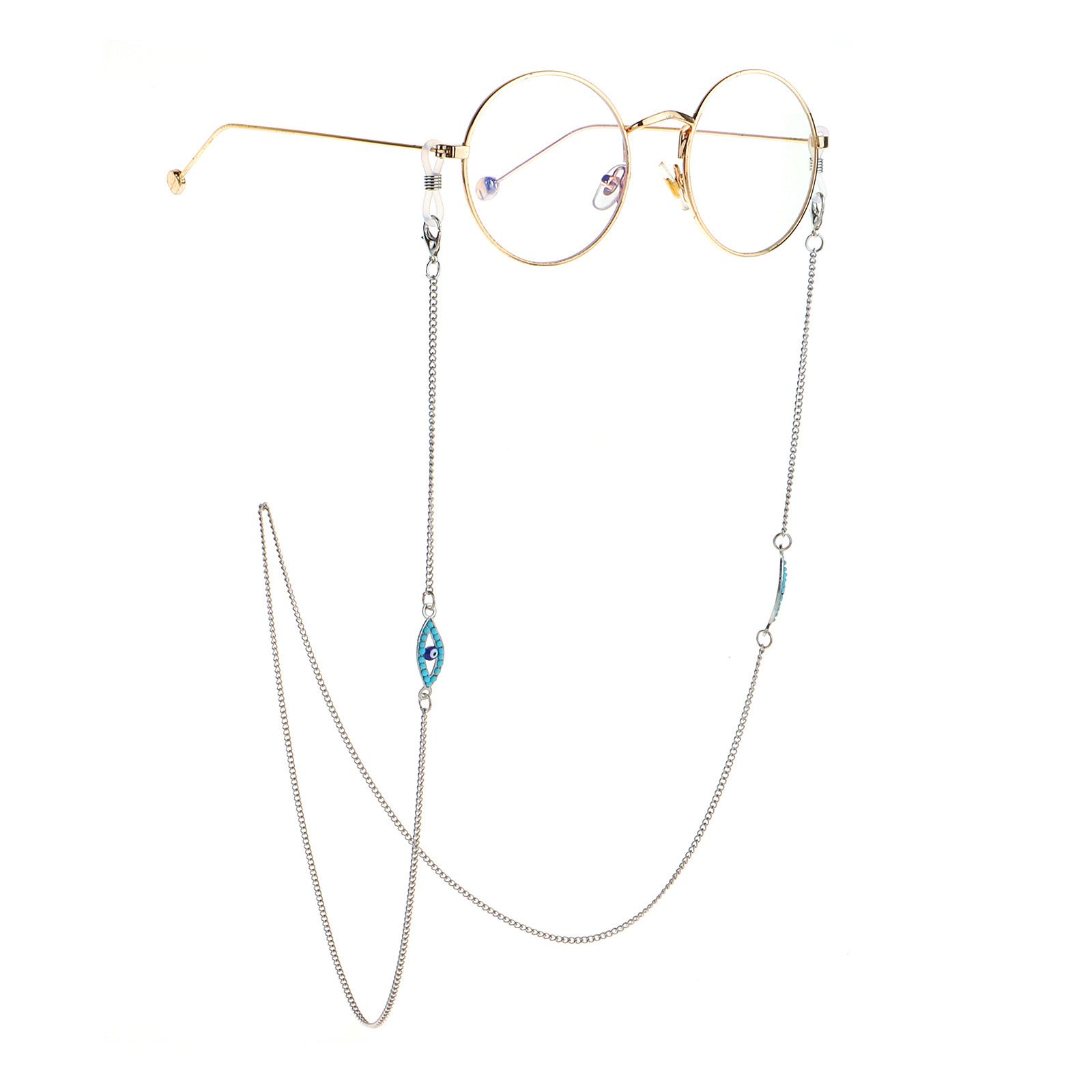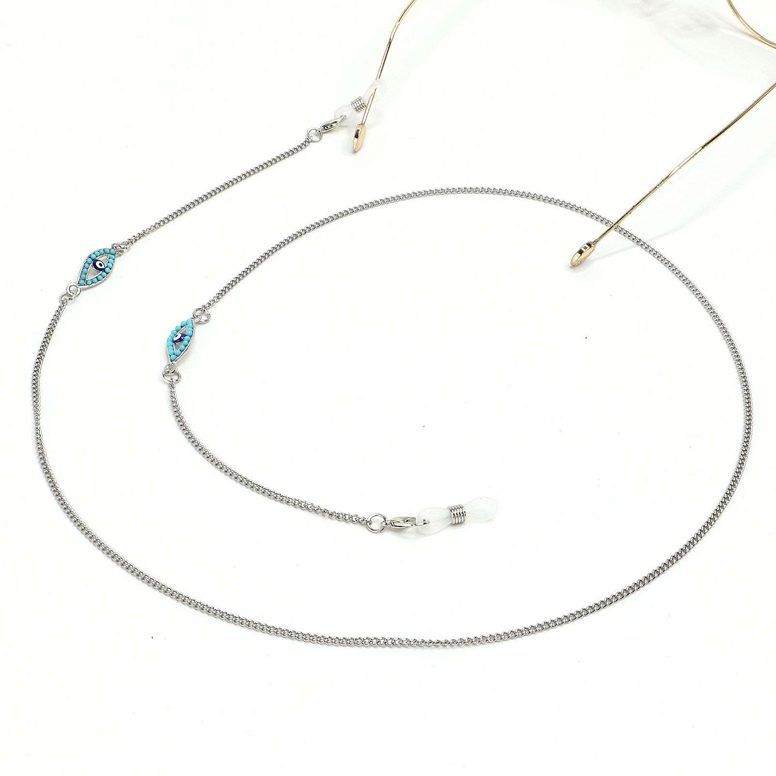 Steel-colored metal non-slip chain, with turquoise yeys, for glasses and masks GS042