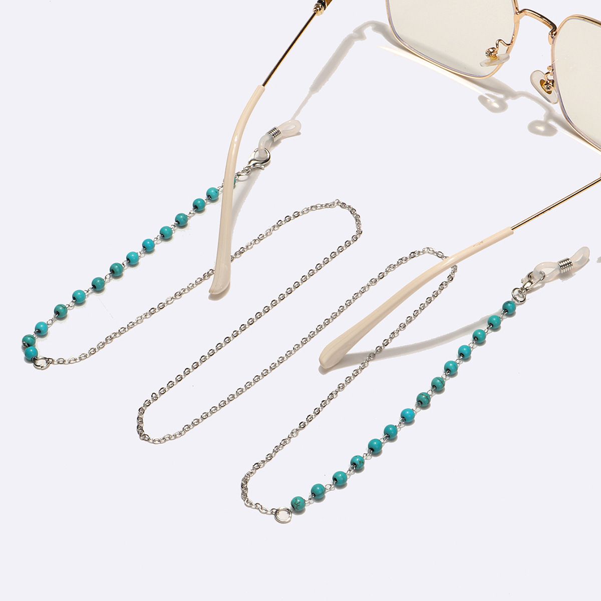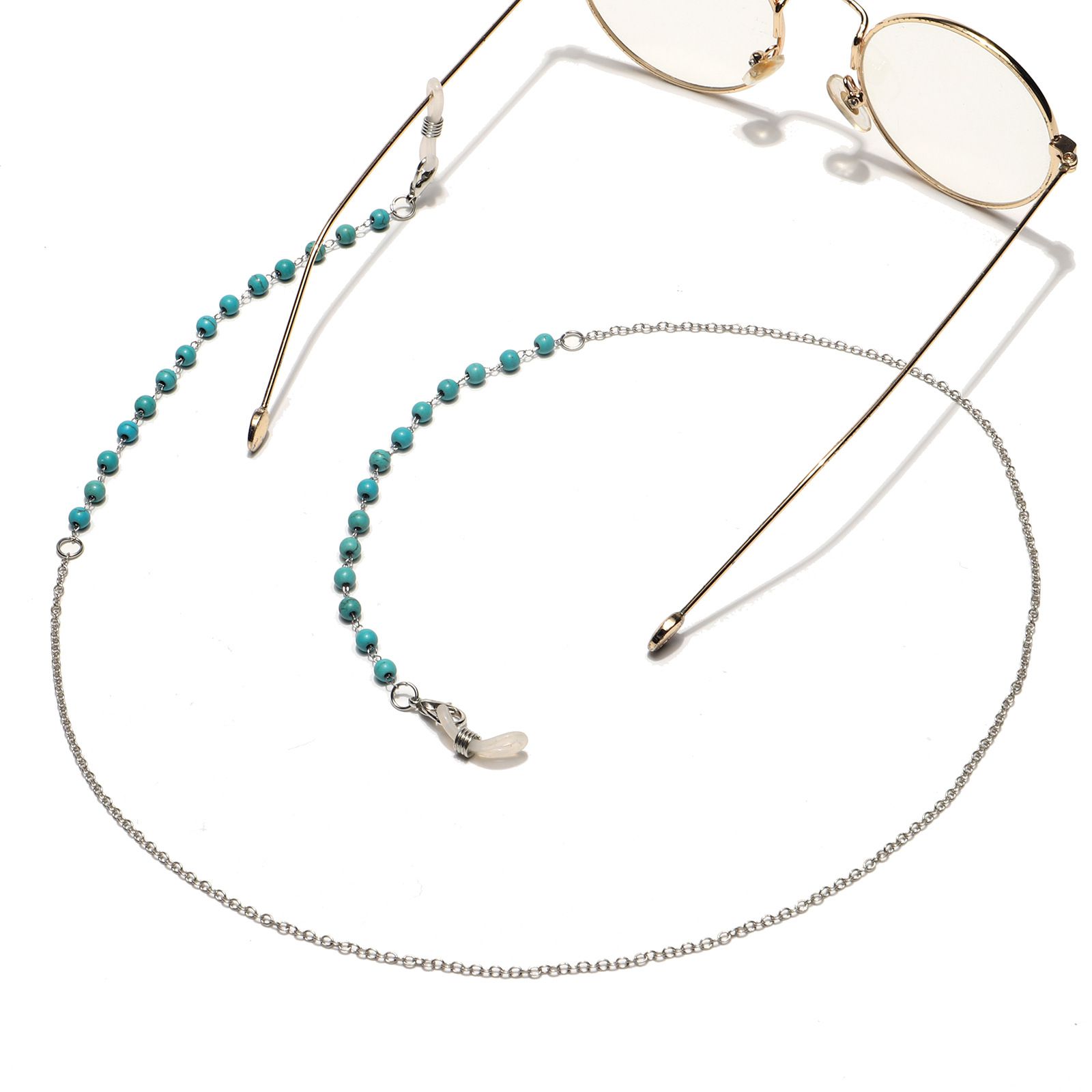 Silver-colored metal non-slip chain, with turquoise natural stone, for glasses and masks GS059