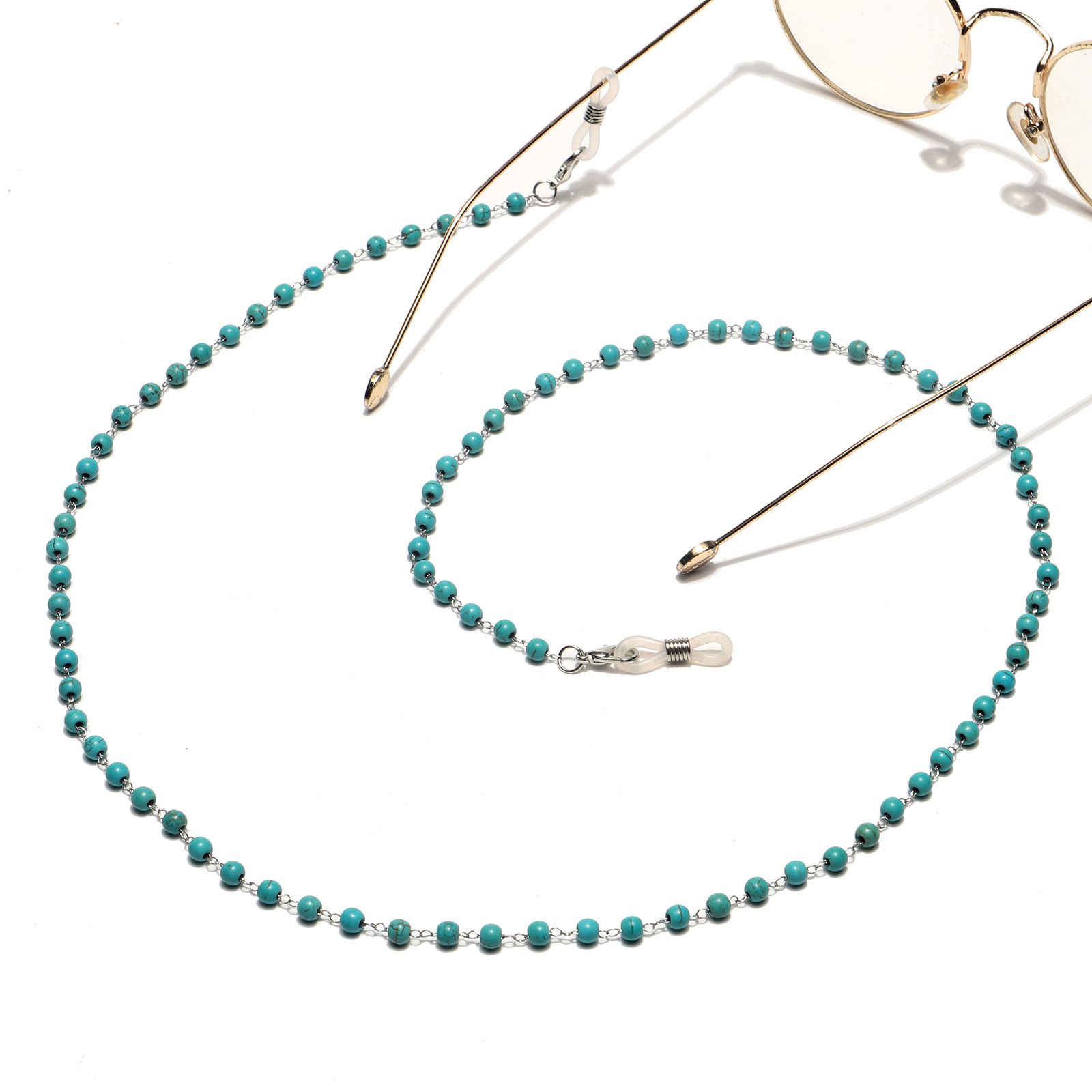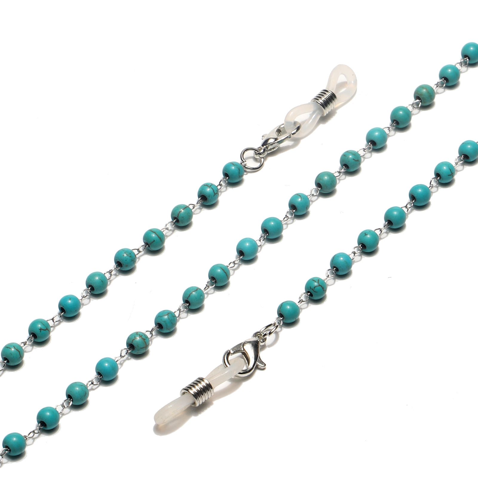 Metal non-slip chain silver, with natural turquoise, for glasses and masks GS060