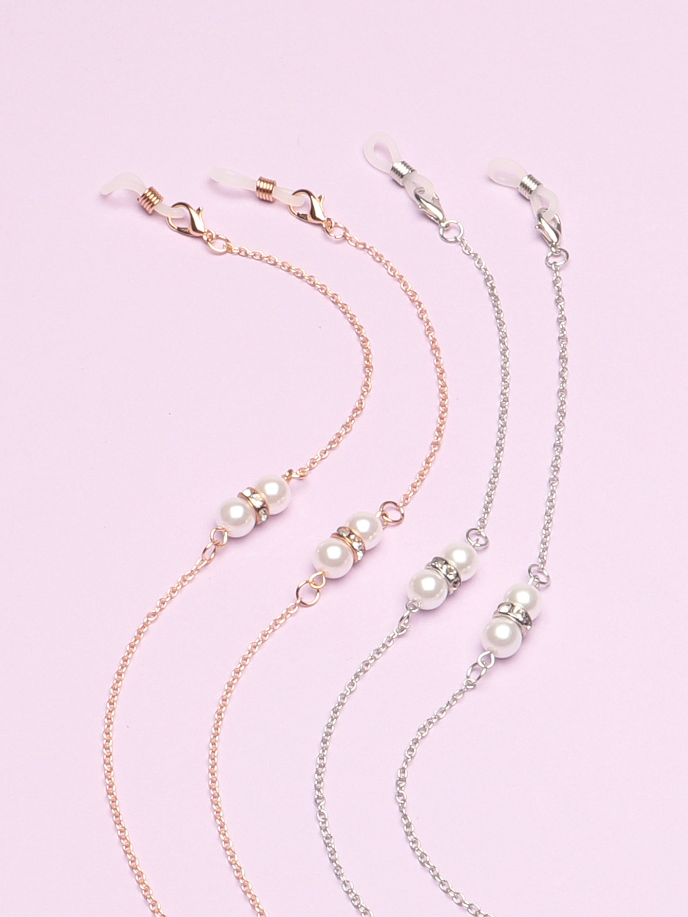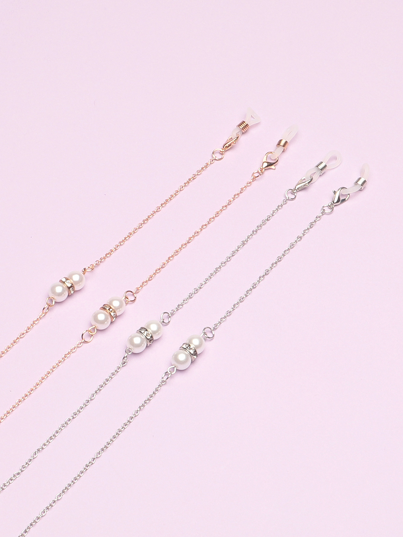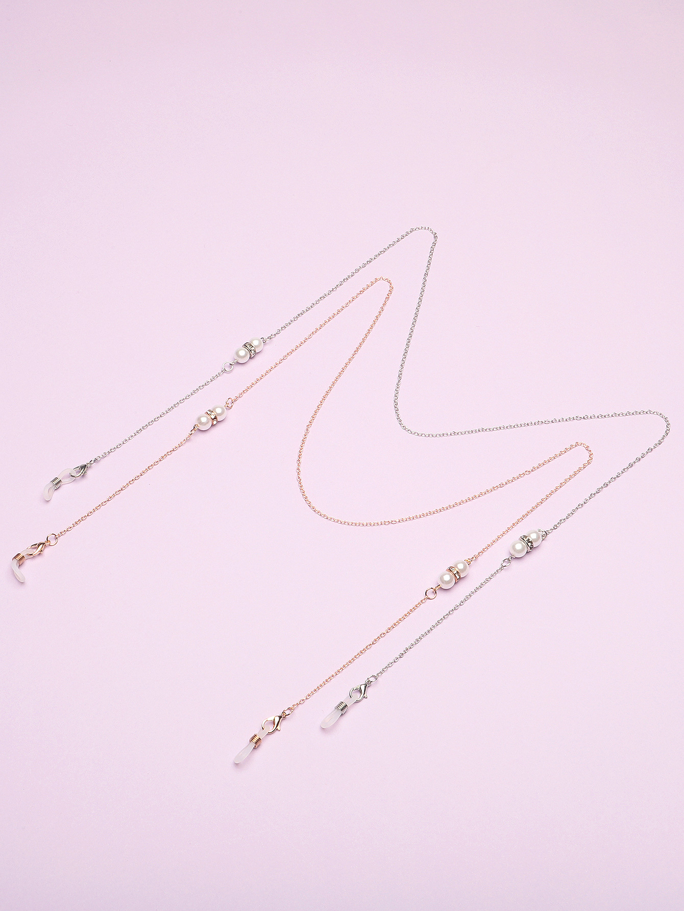 Gold and silver glasses chains with pearls and rhinestones set of two GM047