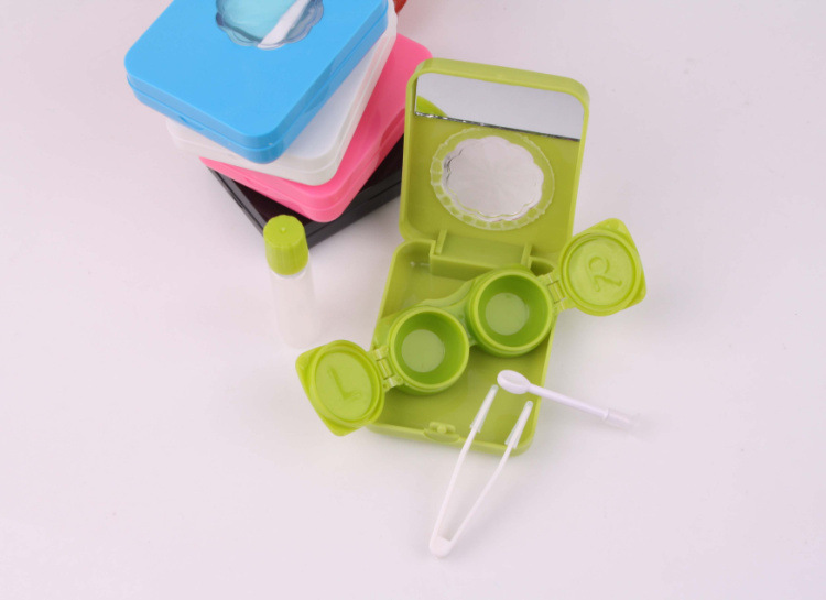 - The kit includes: folding box with a mirror, tweezers, stick with a soft tip, two lens containers, bottle for solution