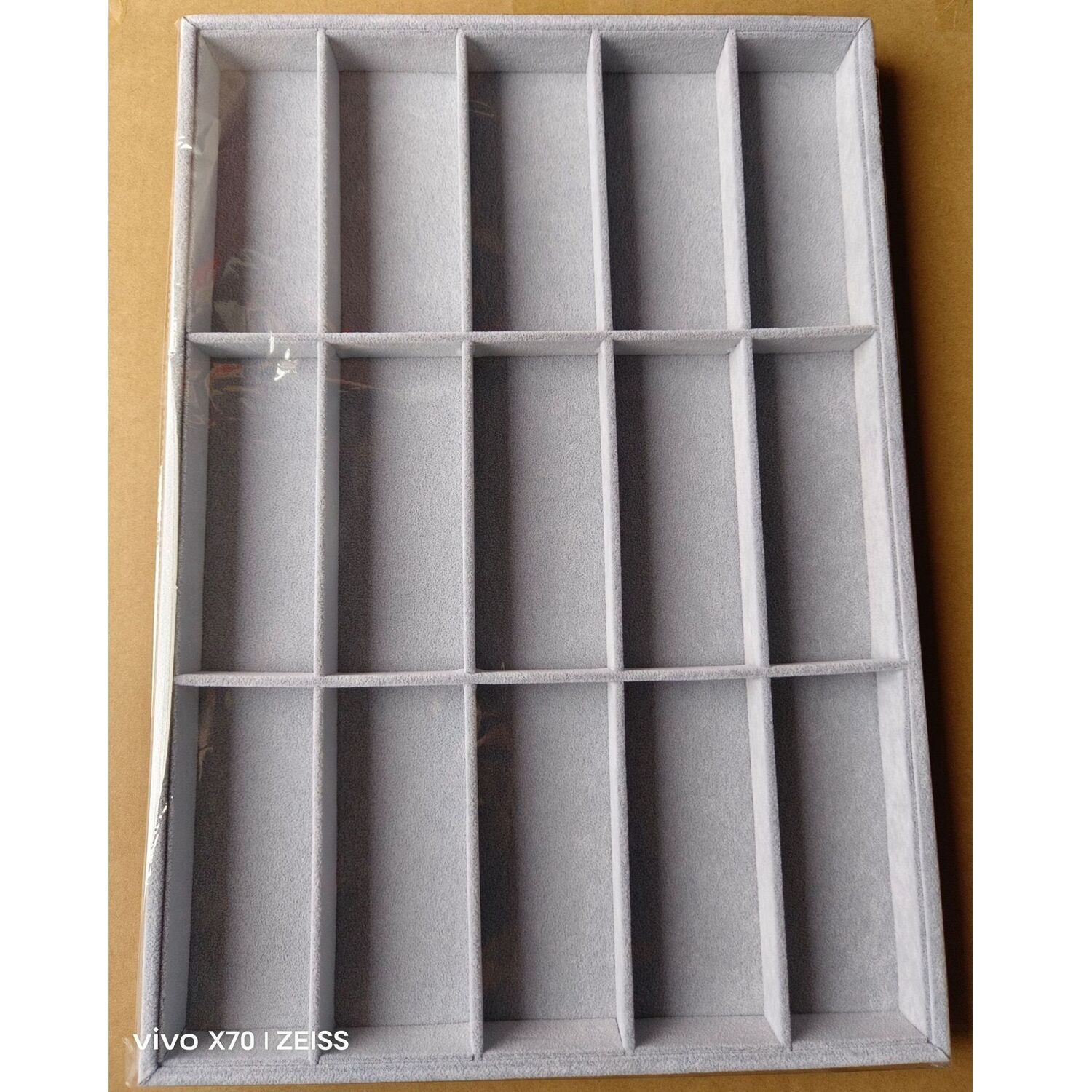 Glasses and frames portable holder display with 10/15 slots, velvet fabric cover, from 2 pieces