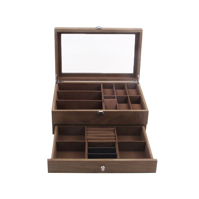 Glasses, frames and accessories holder display with cover and drawer, 3 places for glasses, MDF