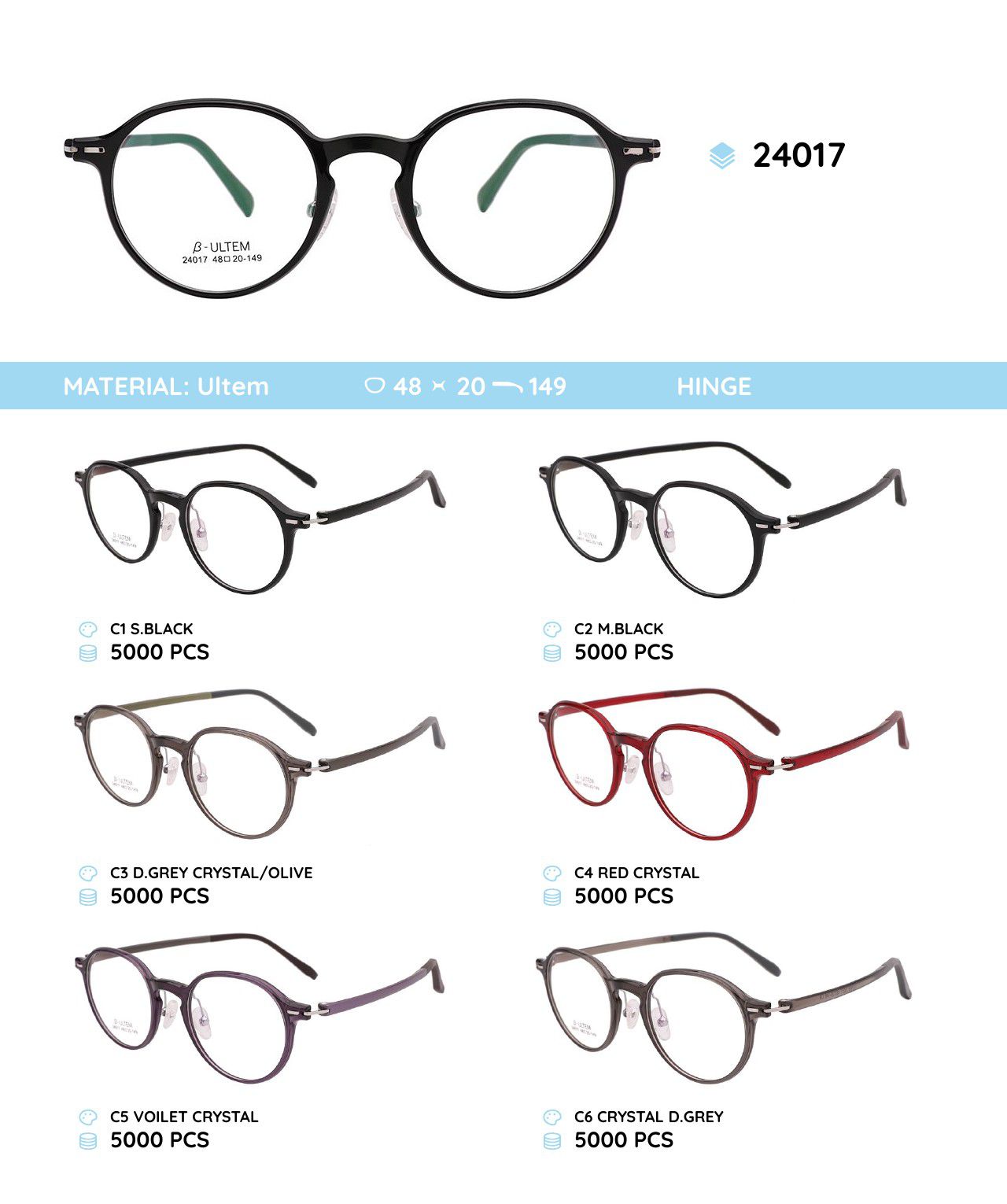 Plastic Ultem eyeglasses frame 24017
