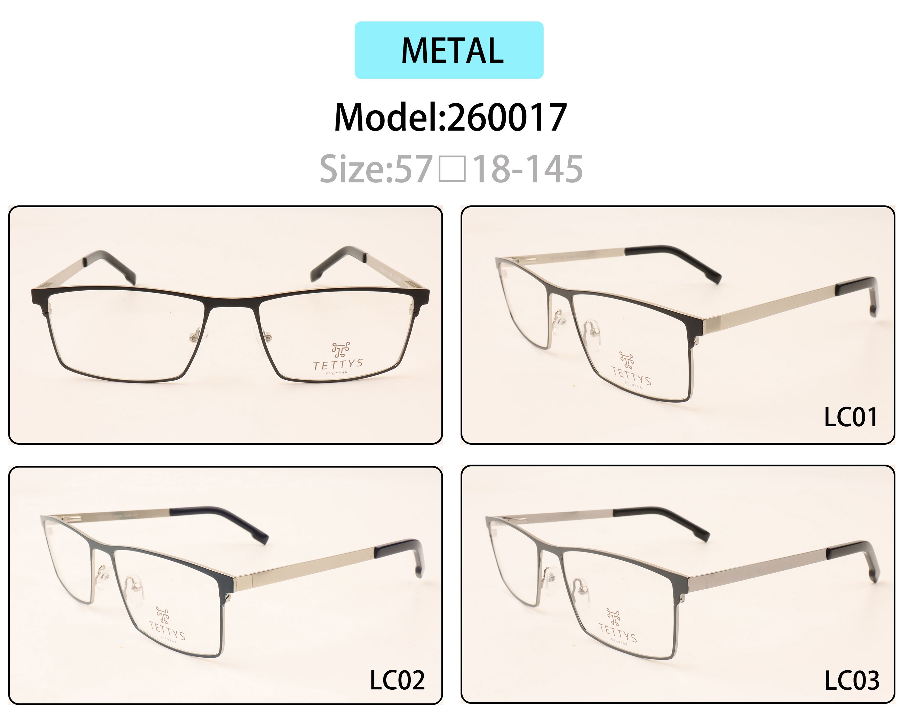 Metal eyeglasses frame for men with spring hinges 260017 (item in stock)