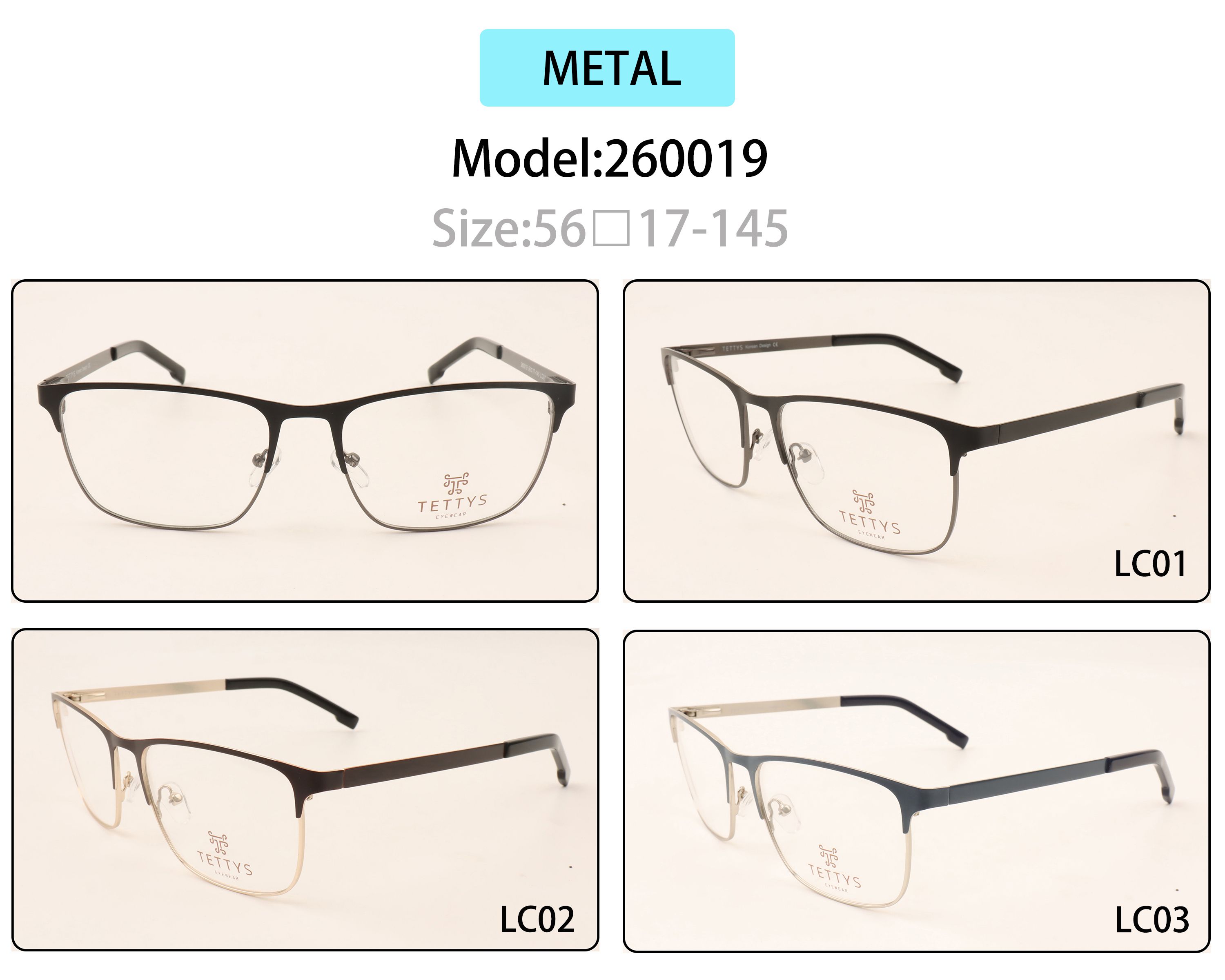Metal eyeglasses frame for men with spring hinges 260019 (item in stock)