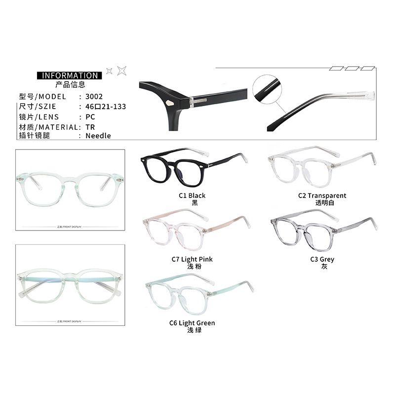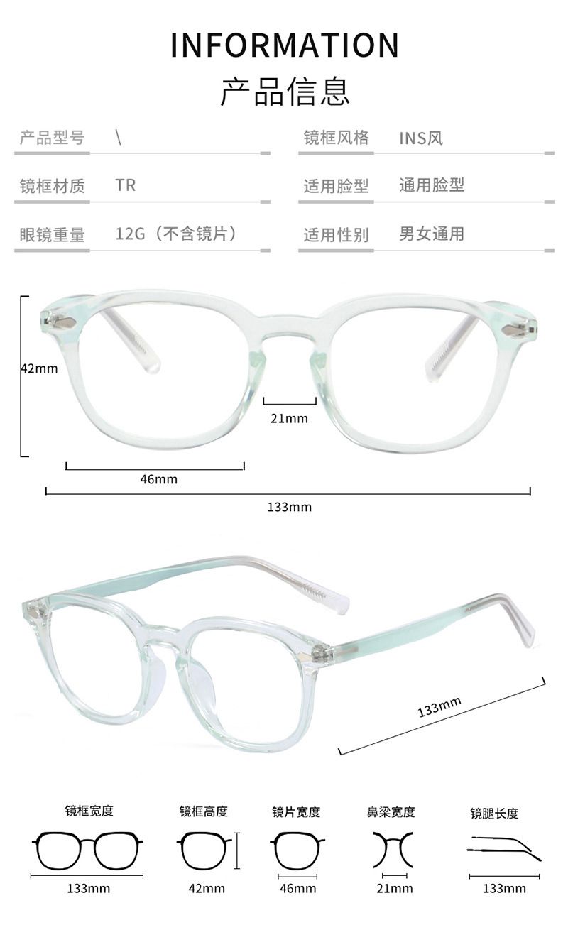 - Frame material: TR90 plastic + metal