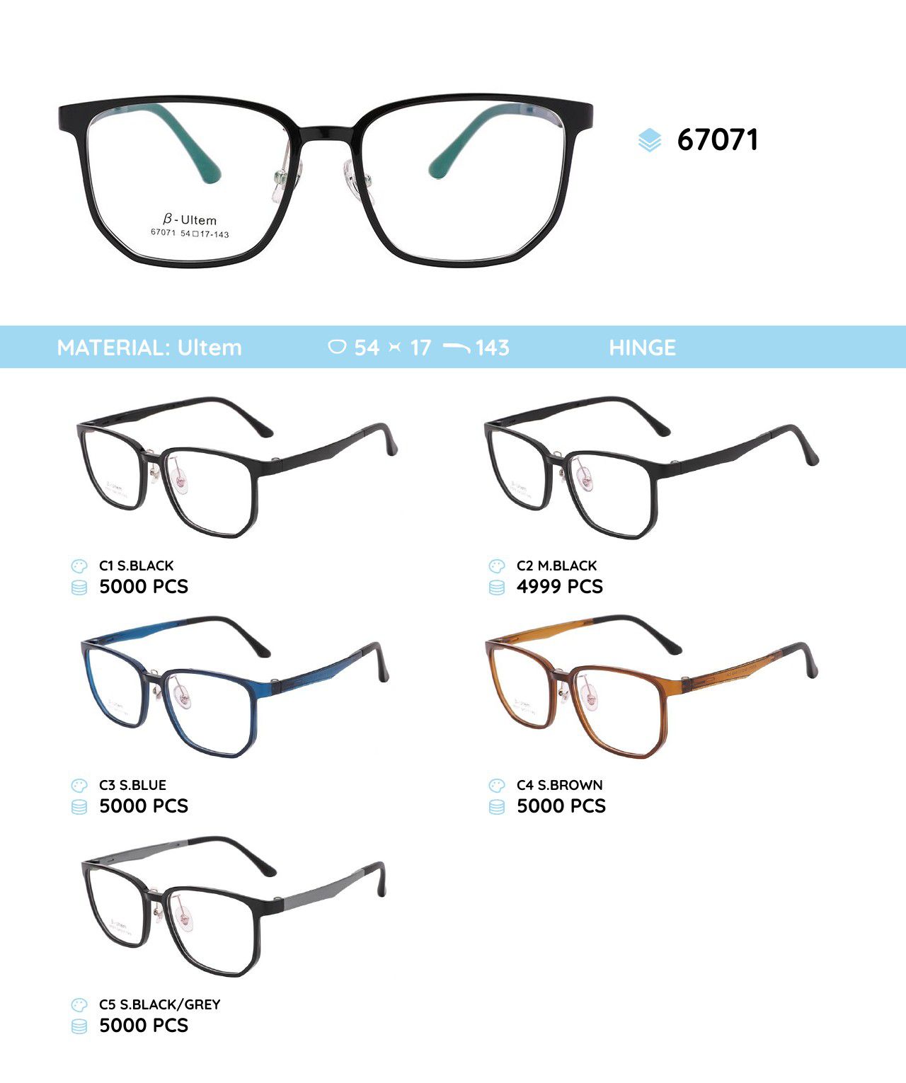 Plastic Ultem eyeglasses frame 67071