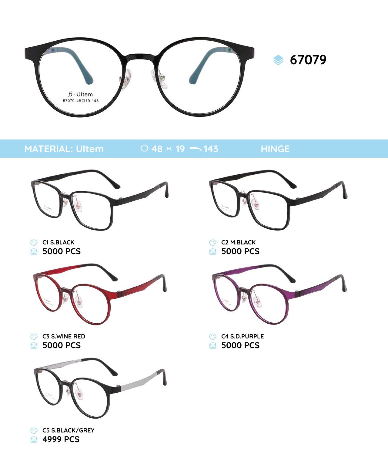 β-Ultem is a modern thermoplastic material (polyetherimide, PEI) used to make eyeglass frames. It combines lightweight construction with high strength, heat resistance up to 170°C, and flexibility with shape memory. The material is hypoallergenic, UV-resistant, and chemically resistant, ensuring durability and comfort. β-Ultem frames are suitable for active lifestyles, sports, and children, and allow for the creation of thin and elegant designs.