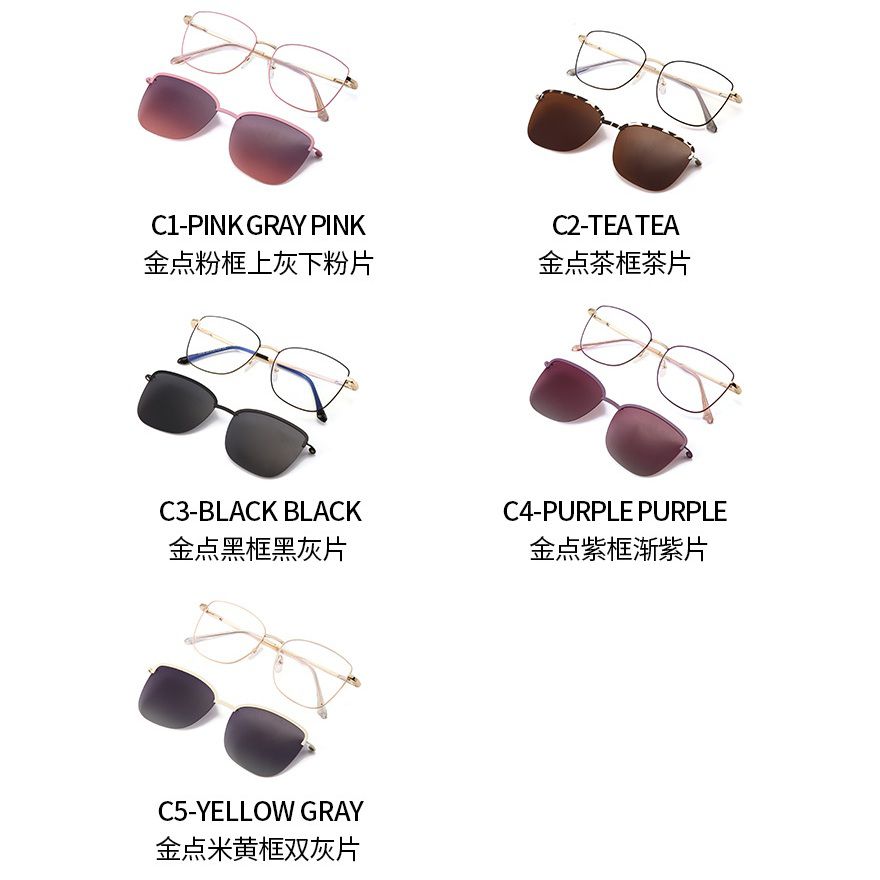 Metal Blue Ray Cut protection cat-eye frame with spring hinges + magnet sunshade clip-on 7018-GT