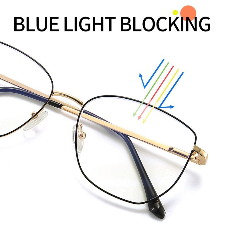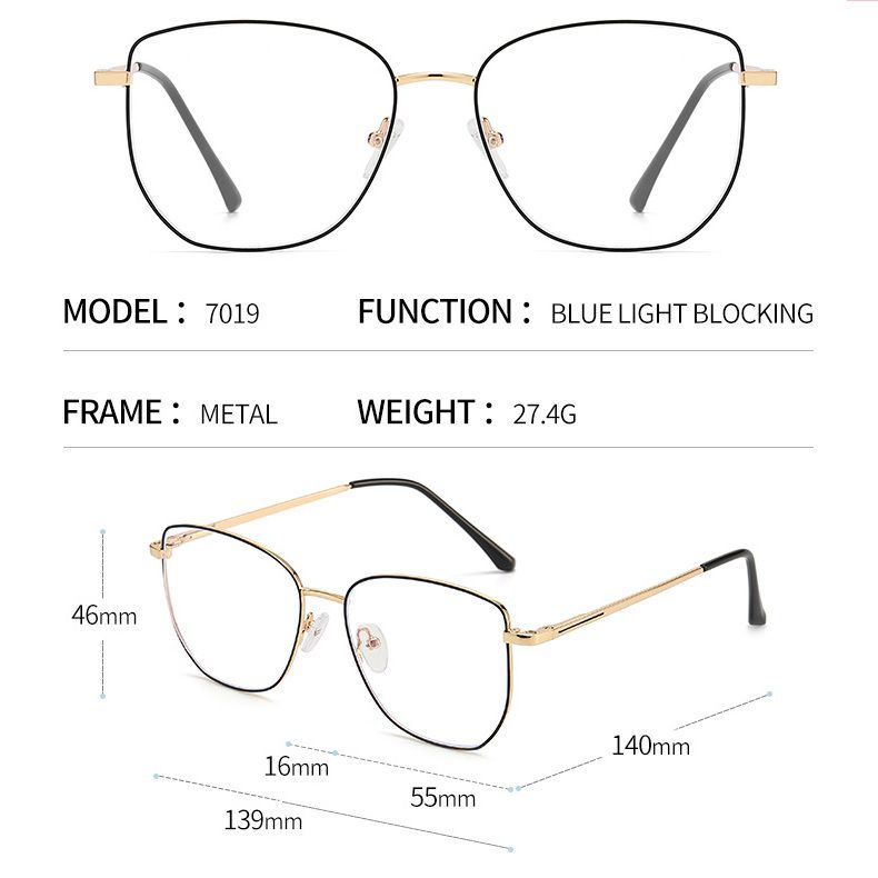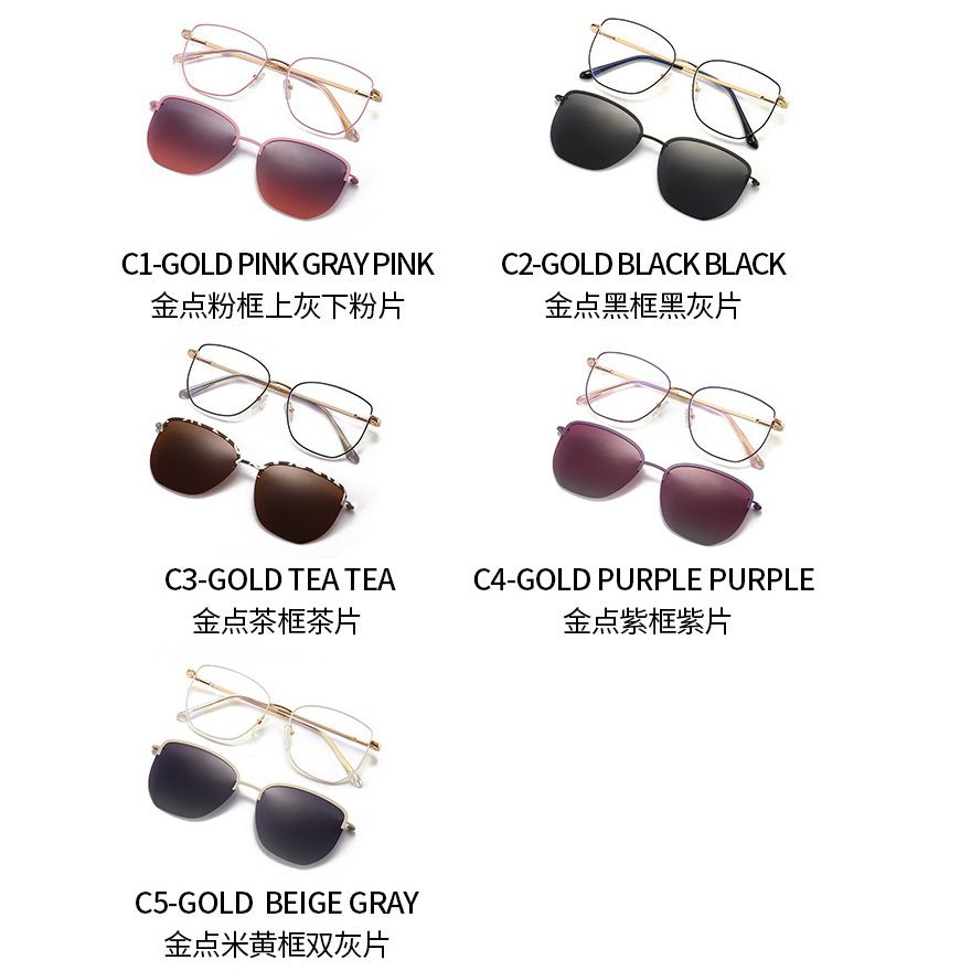 Metal Blue Ray Cut protection cat-eye frame with spring hinges + magnet sunshade clip-on 7019-GT