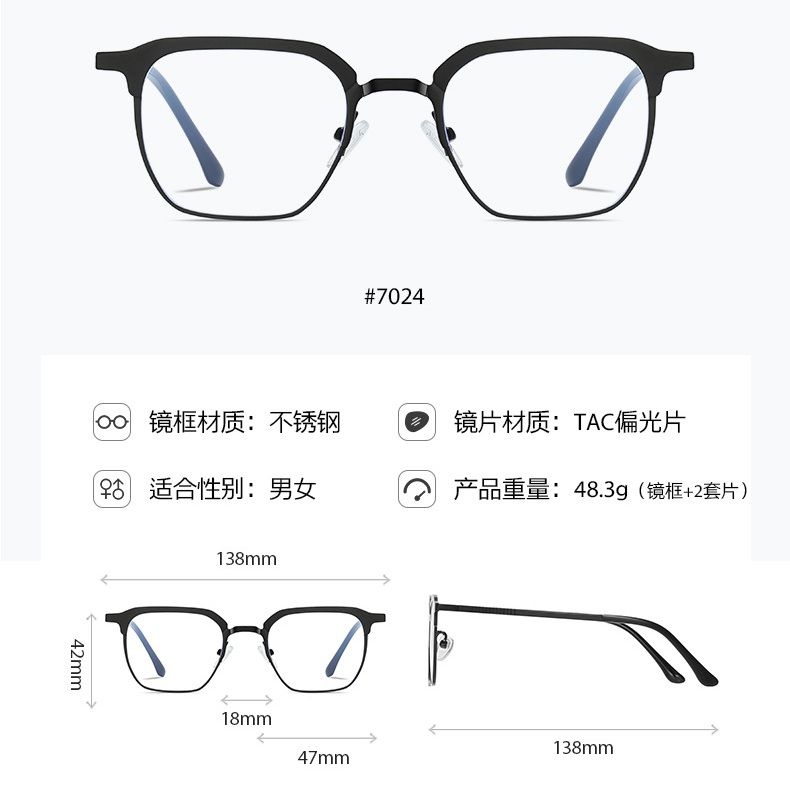 - Size: lens width - 47 mm, bridge - 18 mm, temple length - 138 mm