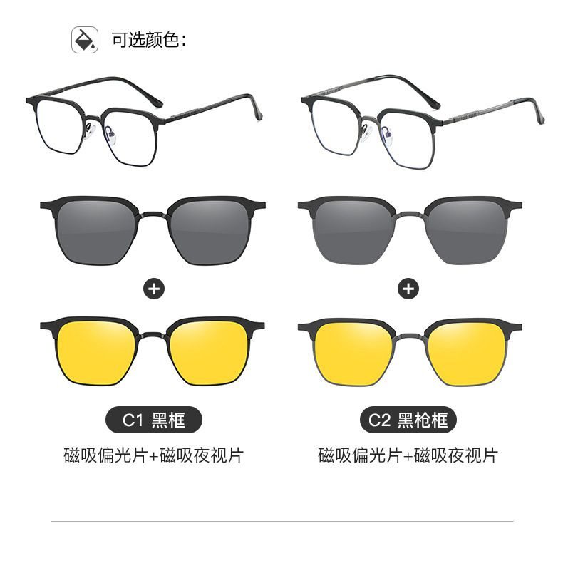 Metal Blue Ray Cut protection frame + 2 magnet sunshade clip-ons 7024-GT