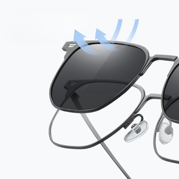 Clip-on frames are a universal solution for people who need to constantly change their glasses when moving from indoors to outdoors and back. The clip-on is a removable element with dark lenses that is easily attached to the main frame using magnets or special fasteners. This allows you to quickly convert regular glasses into sunglasses, providing comfort and protection in any conditions.